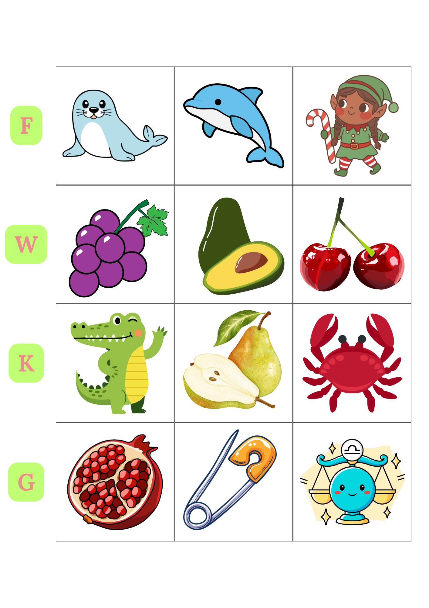 Obrazki z głoskami: P B T D K G F W H J R L Ś Ź Ć DŹ S Z C DZ SZ Ż CZ DŻ a do nich piękna plansza żabki zjadającej te obrazki