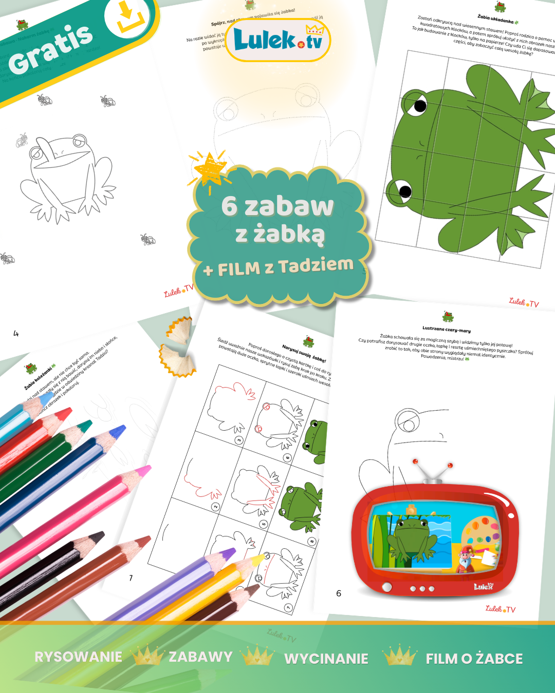 Możecie też obejrzeć film, w którym krasnal Tadzio uczy rysować żabkę Rechotkę, opowiada o jej zwyczajach i wspólnie z dziećmi odkrywa świat stawu.