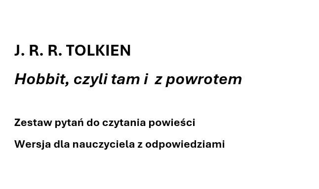 Pytania do czytania powieści "Hobbit, czyli tam i z powrotem"Zestaw dla ucznia i nauczyciela20,00 zł -
