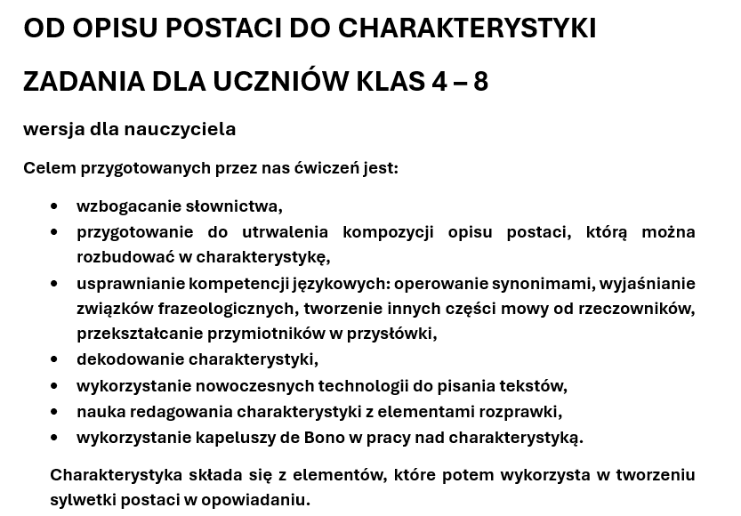 E-book: Od opisu postaci dla charakterystykiPraktyczne ćwiczenia dla uczniów klas 4 - 845,00 zł -