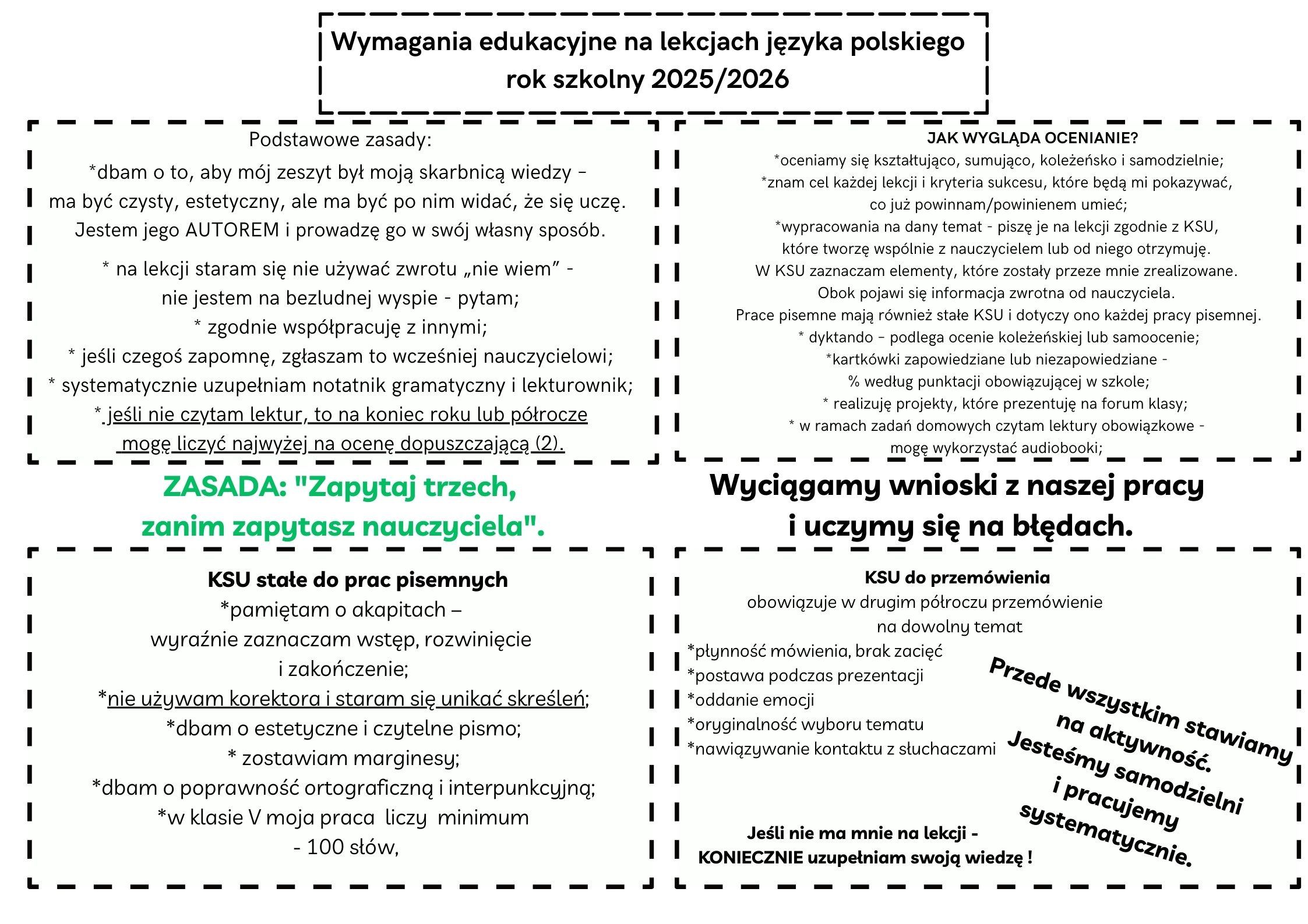 Wymagania do prac pisemnychKryteria sukcesu do prac pisemnych dla uczniów klas 4-825,00 zł -