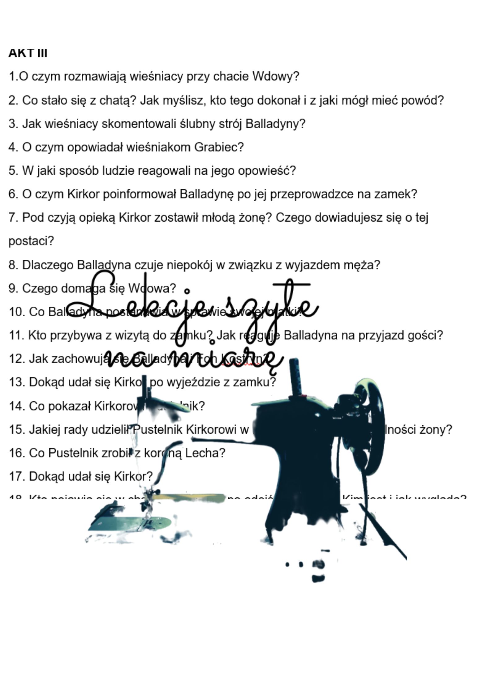 Balladyna Juliusza Słowackiego - pytania do czytaniaPytania do czytania i streszczania tekstu10,00 zł -