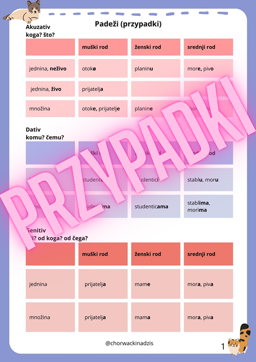DarmowyPrzypadki w języku chorwackim – prosto i w tabelkach 📚Mini-ściąga, która porządkuje przypadki w języku chorwackim i ułatwia ich poprawne użycie. -