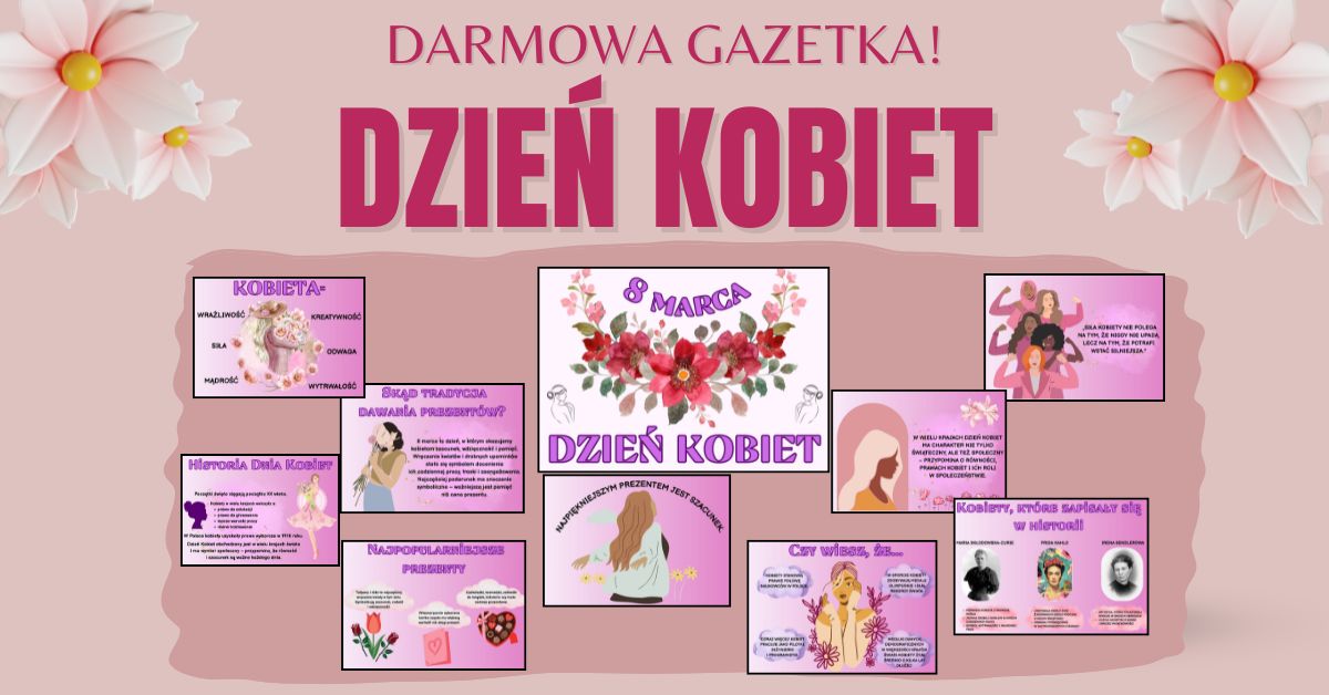 DarmowyDarmowa gazetka Dzień KobietPrzygotowałam 10 gotowych, kolorowych slajdów do stworzenia pięknej gazetki na 8 marca 💐 -