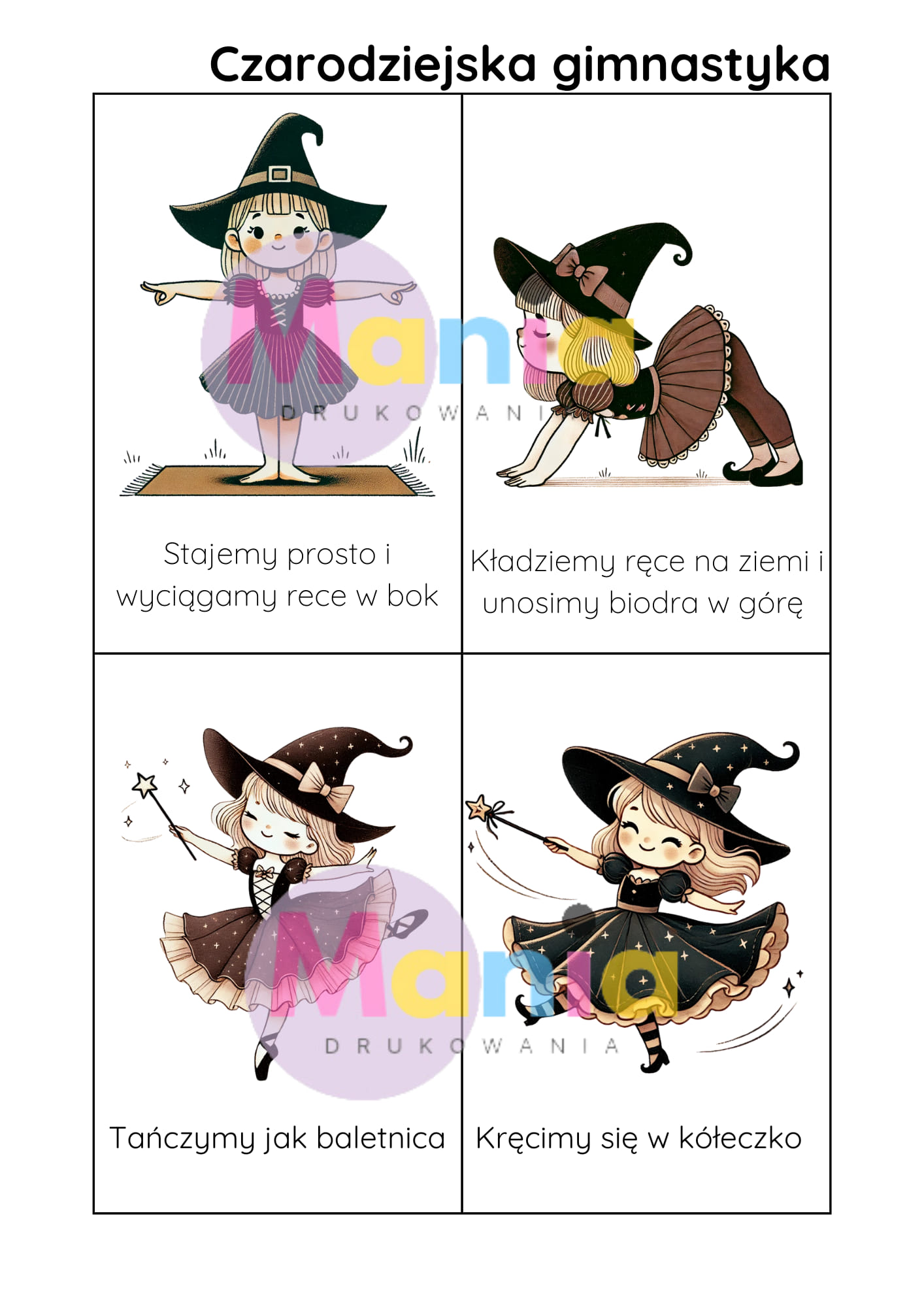 3. Czarodziejska gimnastyka – Losuj kartę i naśladuj ruchy magicznej postaci.