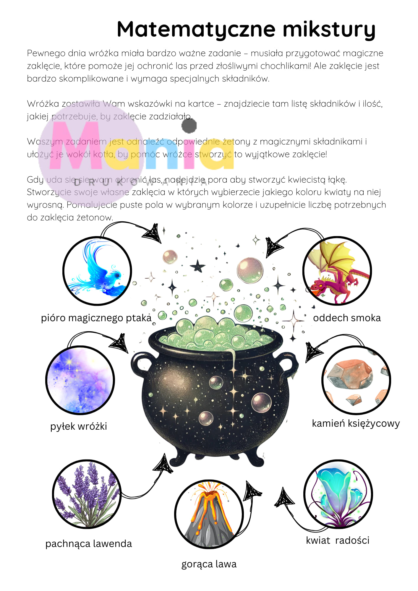 2. Matematyczne mikstury – Ćwicz liczenie z kolorowymi składnikami mikstury.