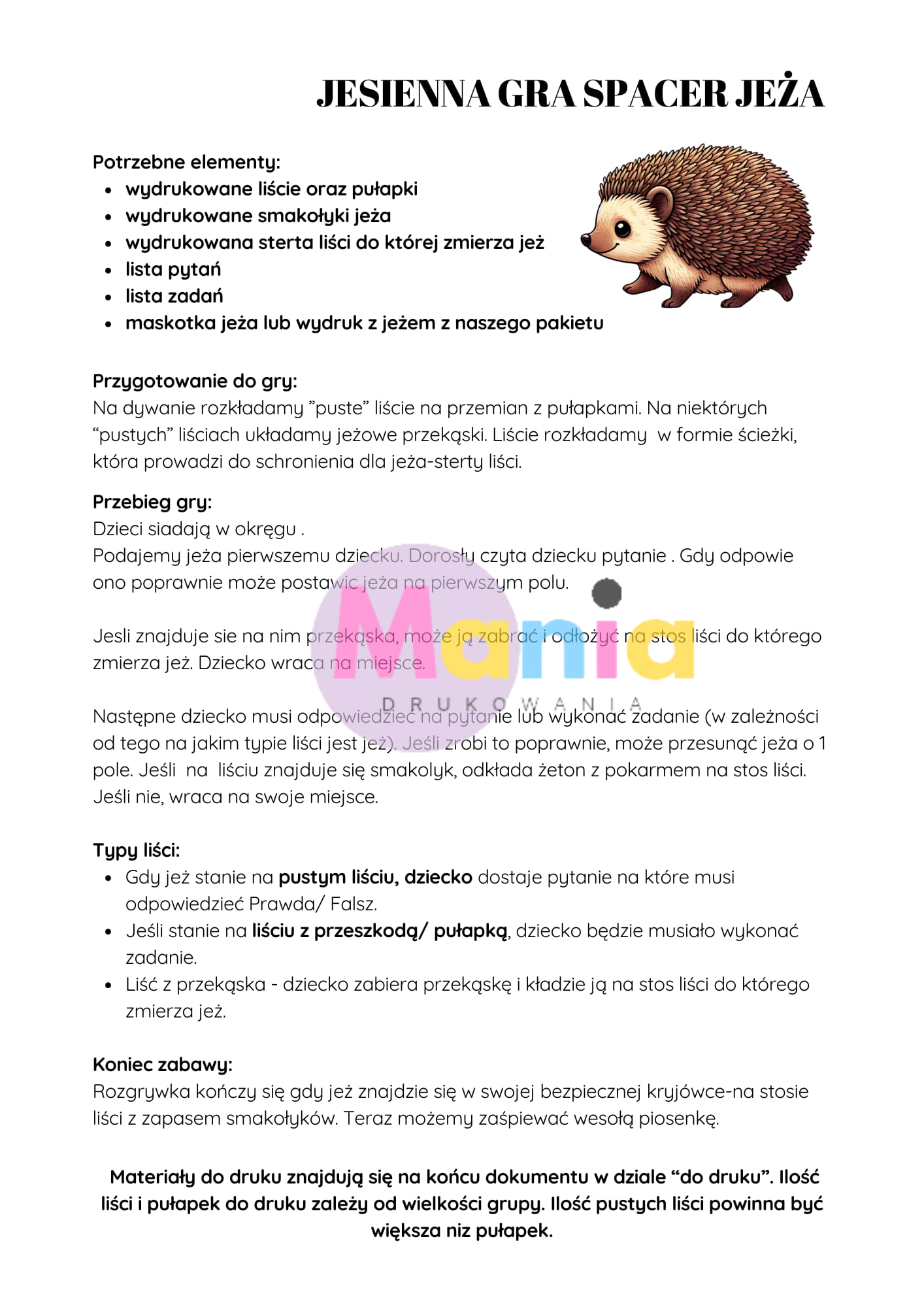 Jesienny spacer jeża- wspaniała gra dywanowa