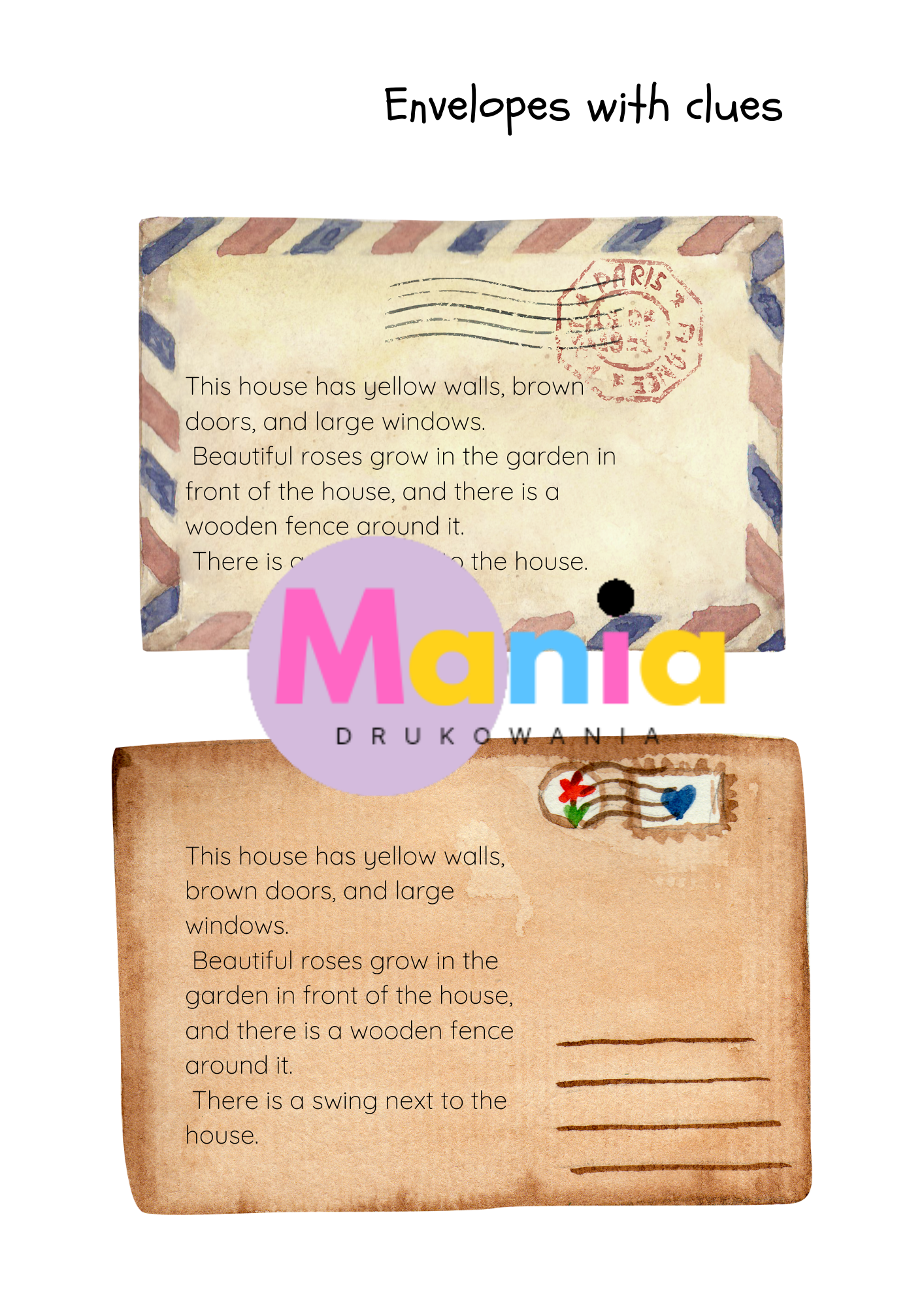 • gra „Postman’s Helper” z kartami domów, budynków i kopertami ze wskazówkami,