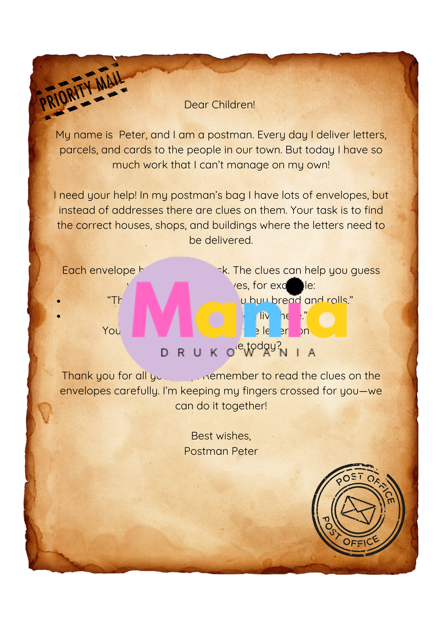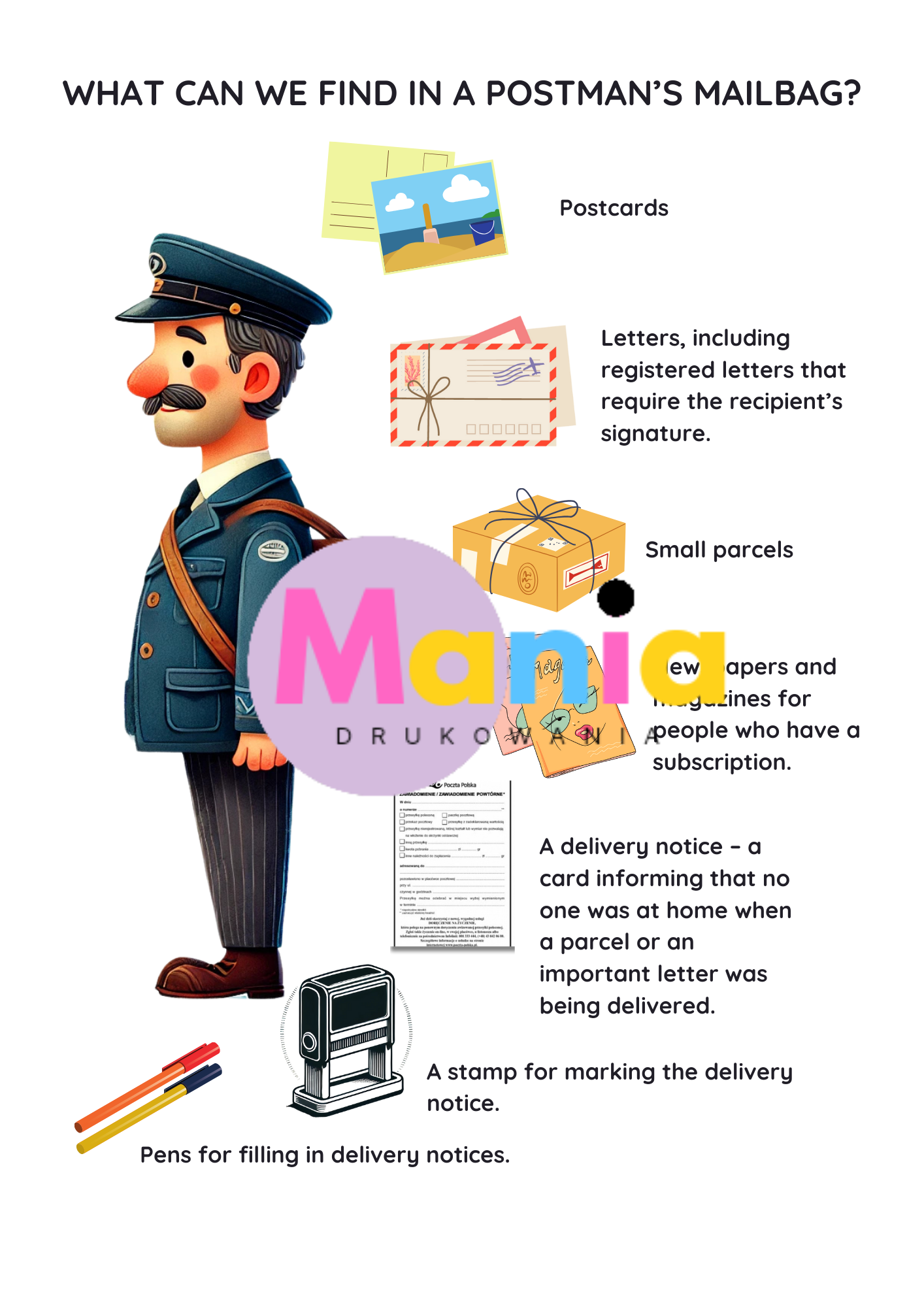 Wyjątkowy, gotowy do wydruku zestaw edukacyjny w języku angielskim z okazji Dnia Listonosza (sprawdzi się również na Dzień Poczty).