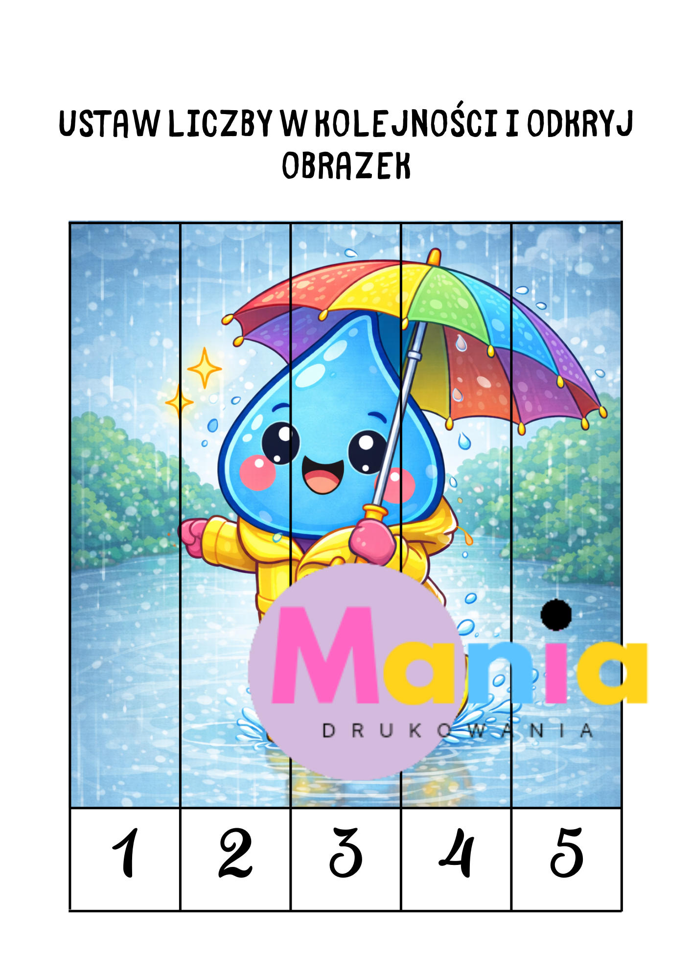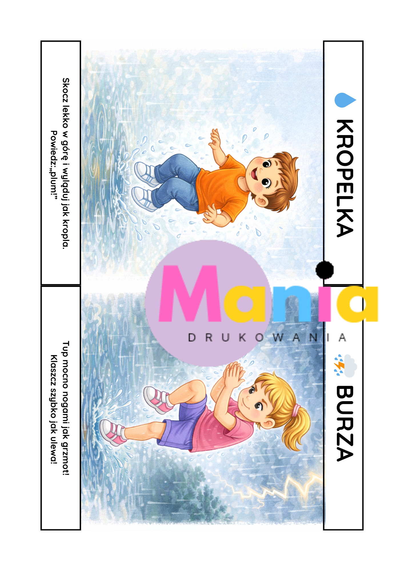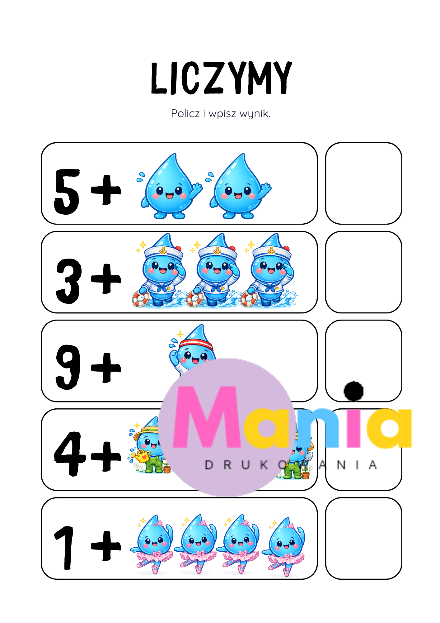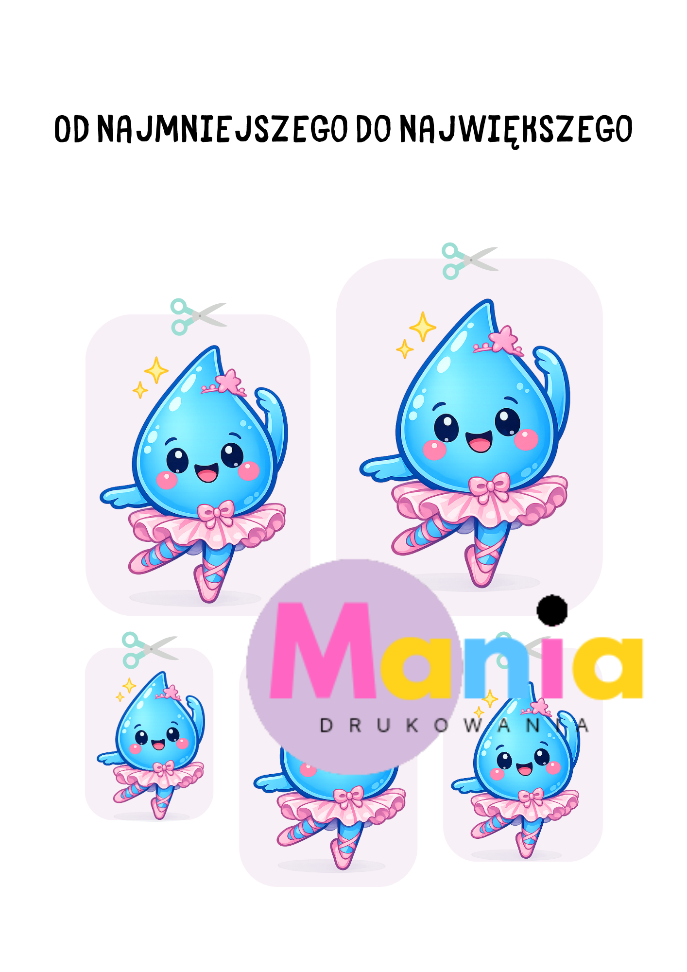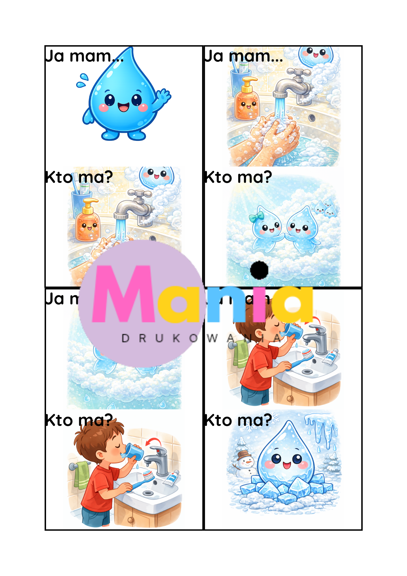 ✔️ Ilustracje A4 wesołych kropelek wody