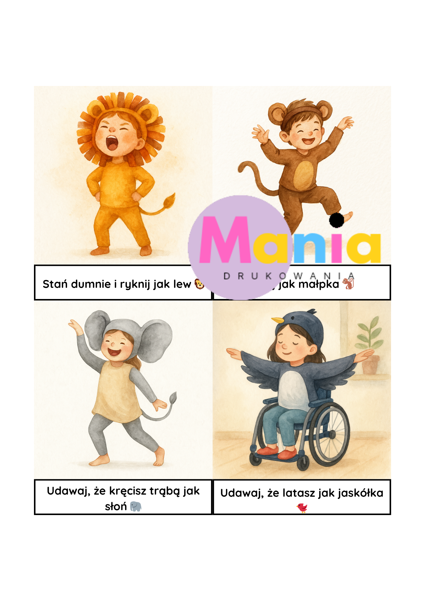 Karty ruchowe – poruszaj się jak zwierzęta – fantastyczna zabawa ruchowa, idealna na przerwę lub zajęcia w sali.