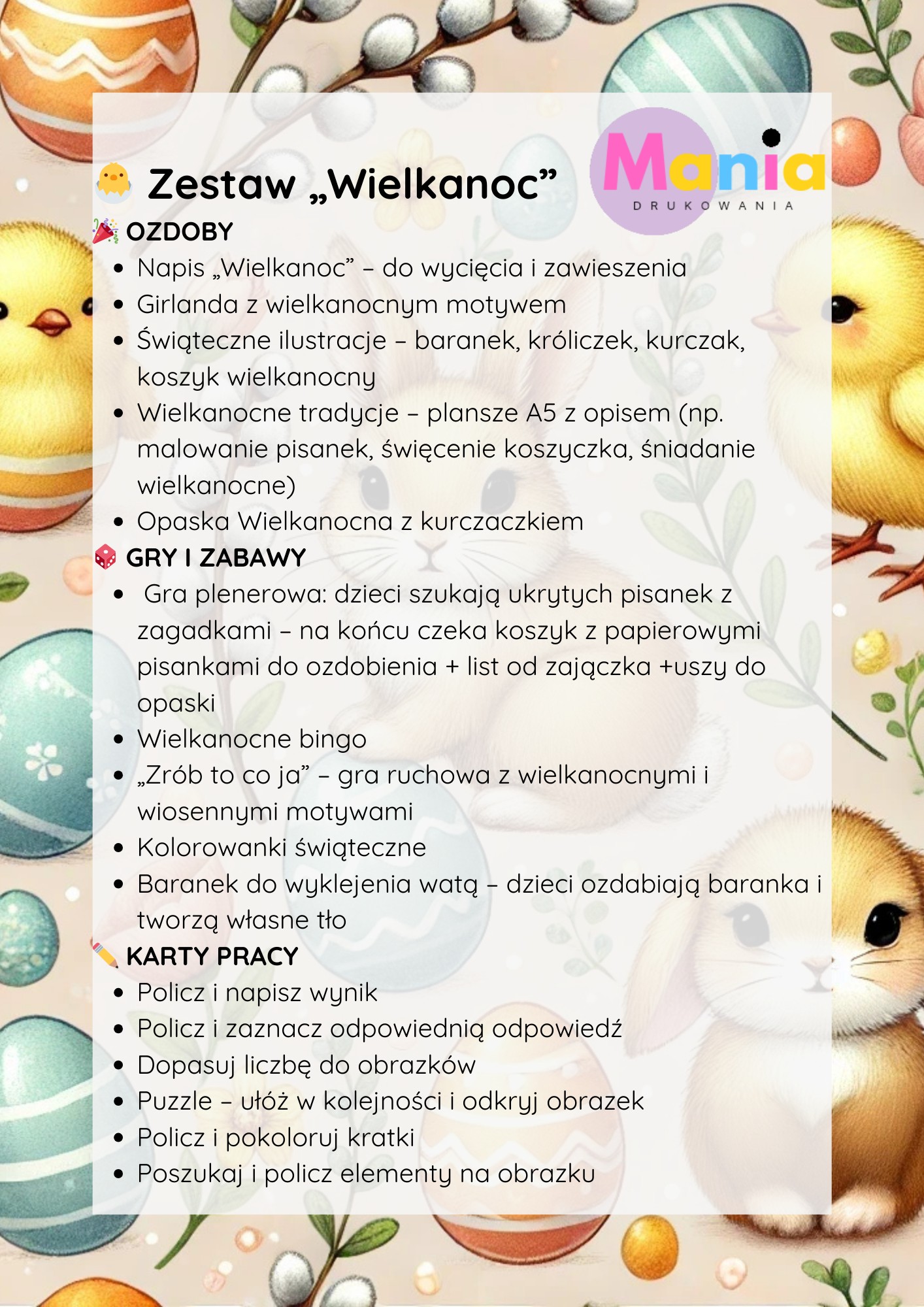• plansze A5 z opisem wielkanocnych tradycji