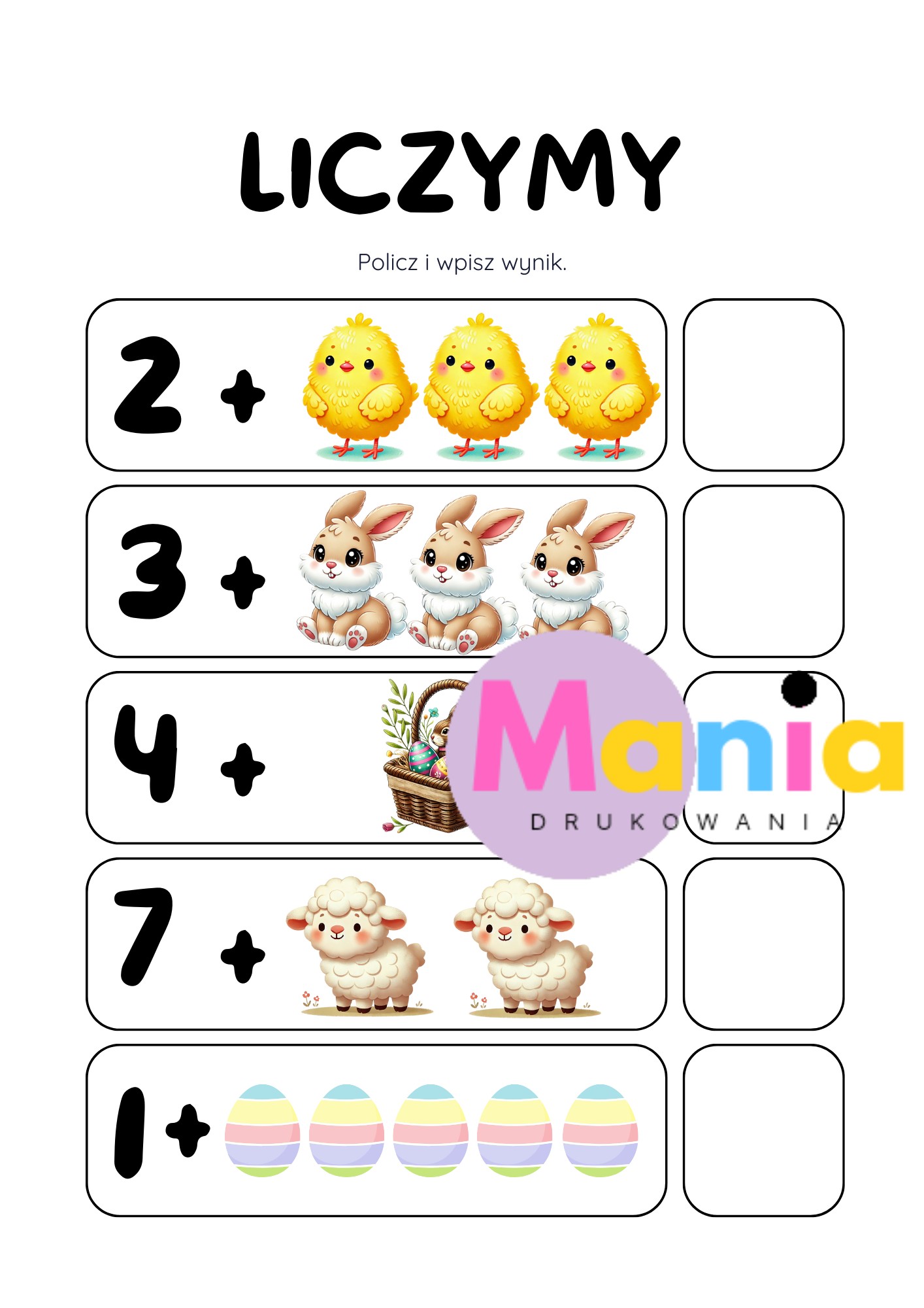 • wielkanocne ilustracje (baranek, kurczaczek, króliczek, koszyczek, pisanka)