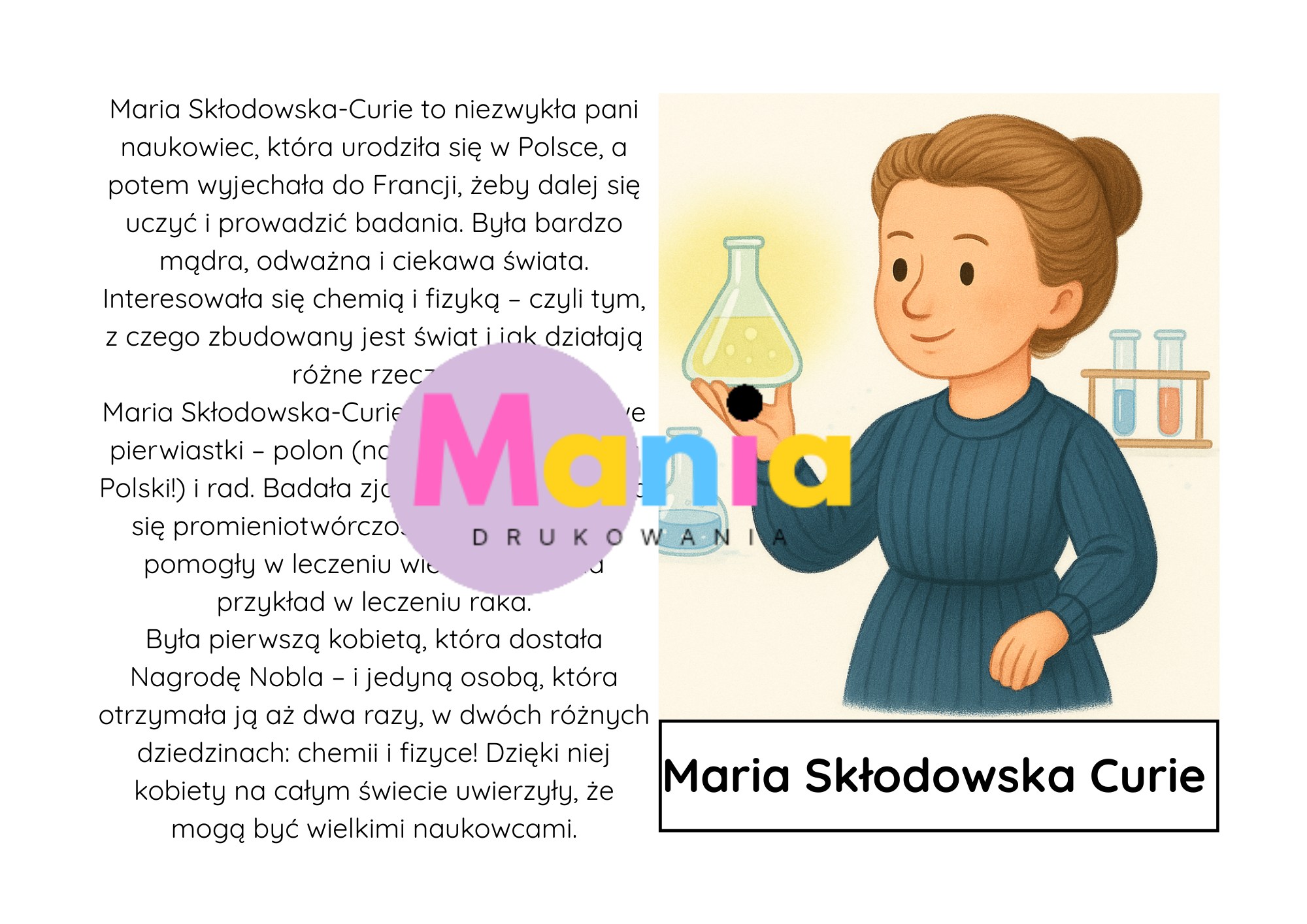 Poznajcie nasz najnowszy zestaw edukacyjny: 33 znane postacie z Polski – każda przedstawiona na osobnym arkuszu A4 w poziomie. W zestawie znajdziesz m.in. naukowców, artystów, sportowców i bohaterów historycznych – wszystkie postacie opatrzone krótkim, przystępnym opisem dla dzieci.