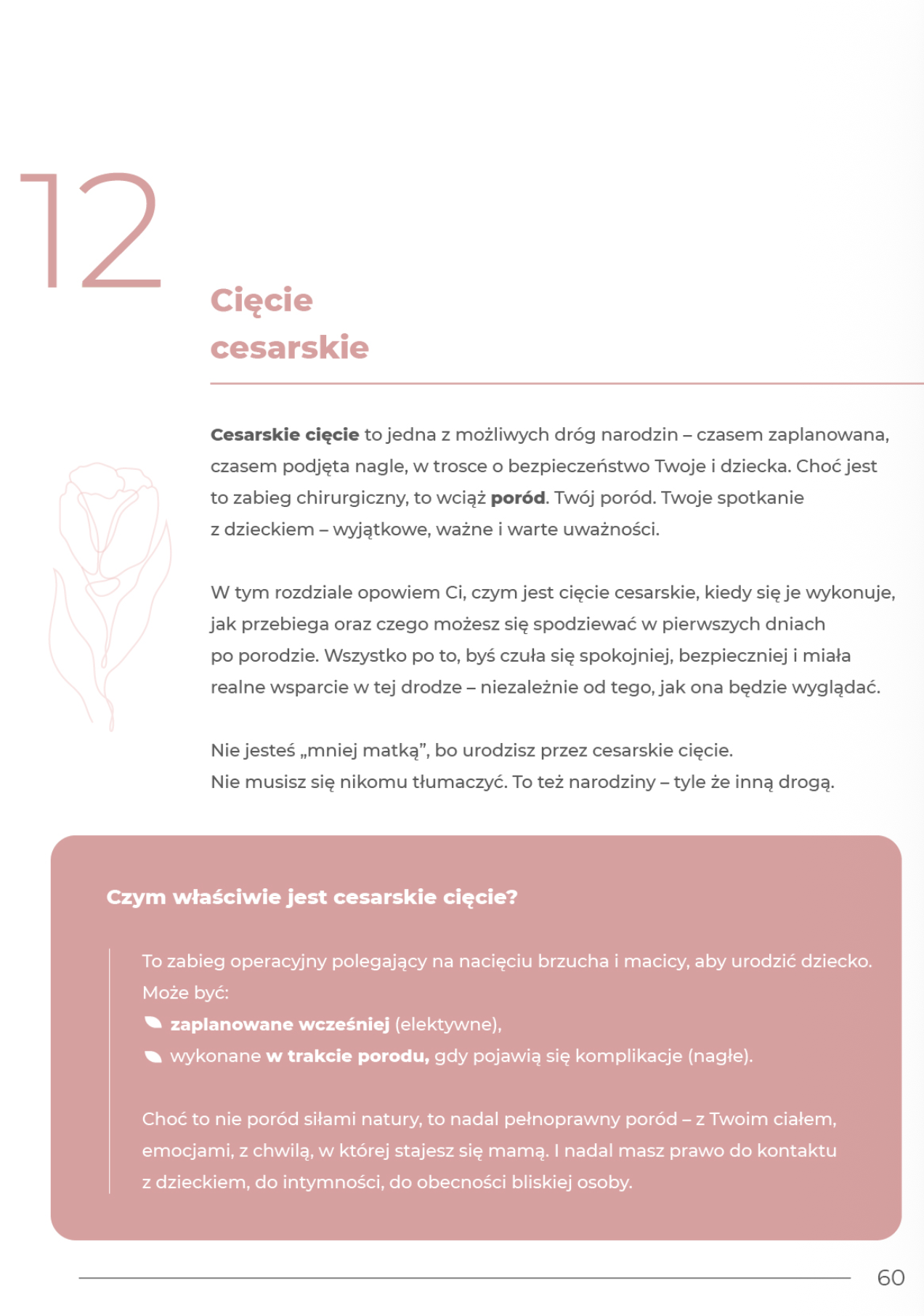 Rzetelnie, spokojnie i bez ocen. Ten rozdział przygotowuje Cię na cięcie cesarskie — planowane lub nagłe — tak, abyś czuła się zaopiekowana i świadoma tego, co się dzieje.