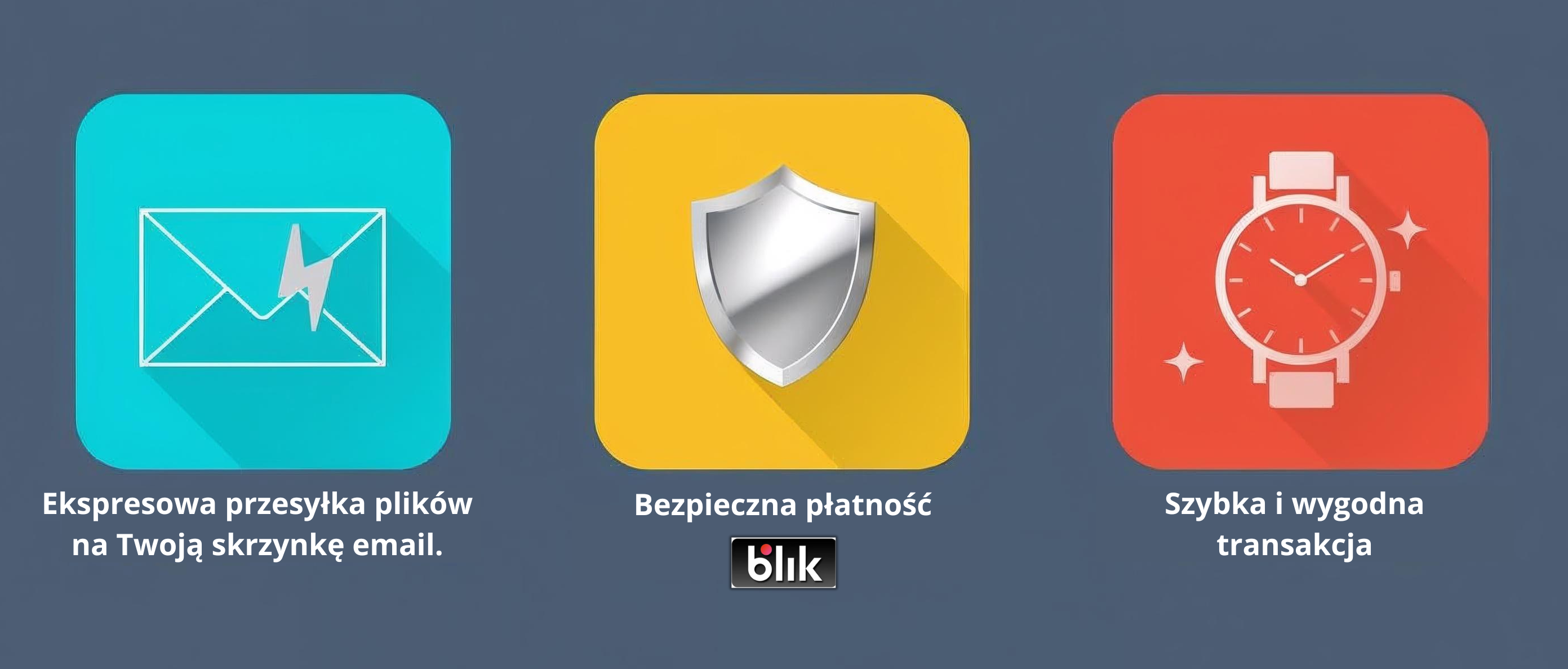 Po zakupie BLIKIEM/KARTĄ ze strony sklepu materiały wysyłane są automatycznie. Czasami jednak zdarza się, że mail z linkiem do pobrania trafia do folderu Spam, Inne lub Oferty, dlatego proszę sprawdź te foldery, jeśli wiadomość nie pojawi się w skrzynce głównej.
