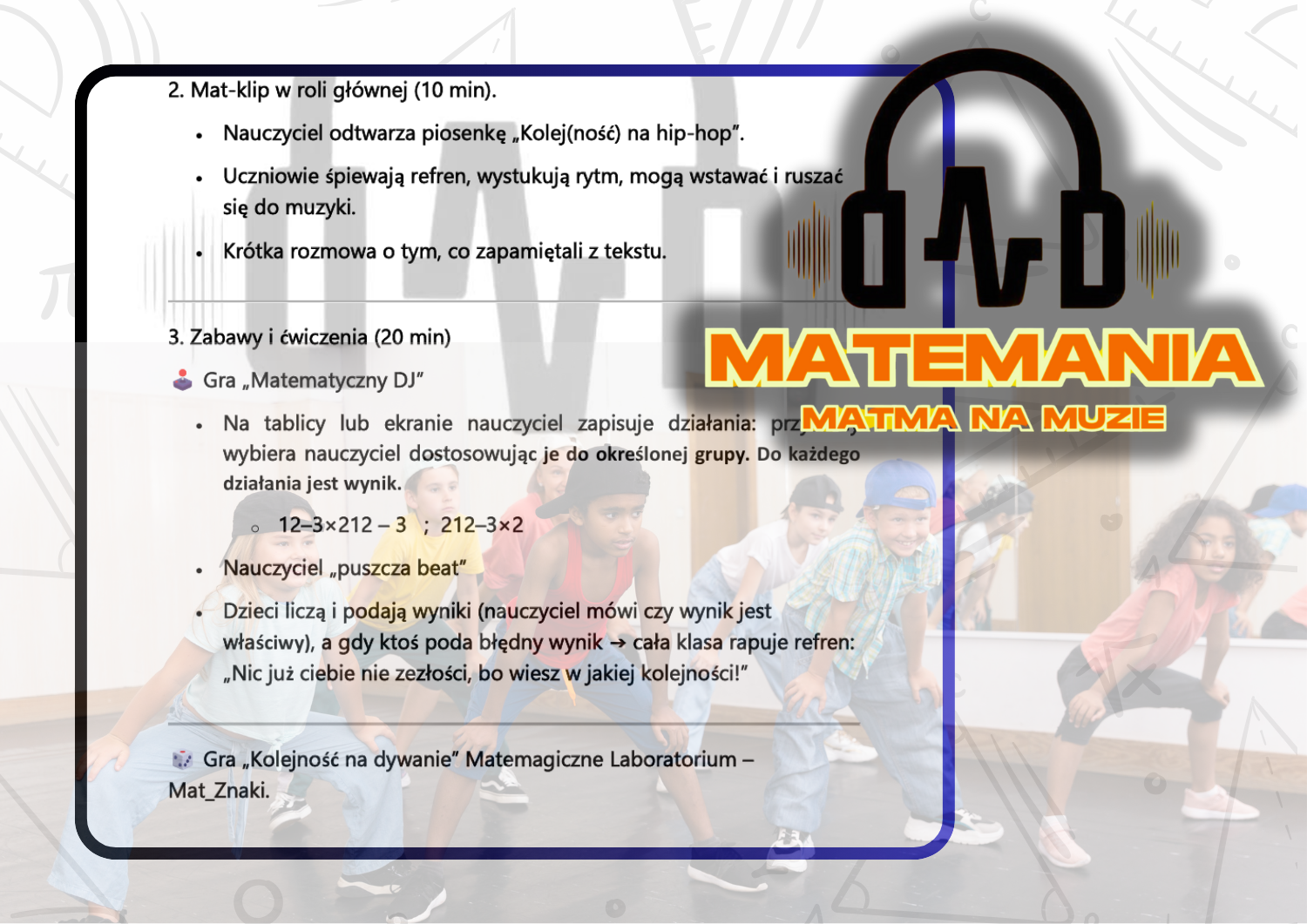 🎶1🎧rewelacyjny mat-klip ✖️ "Kolej(ność) na hip-hop" z wideo i animacjami -uczeń w muzyczny sposób poznaje prawidłowości dotyczące kolejności wykonywania działań, klip sprzyja kodowaniu informacji dzięki rytmowi, rymom i angażowaniu emocji.
