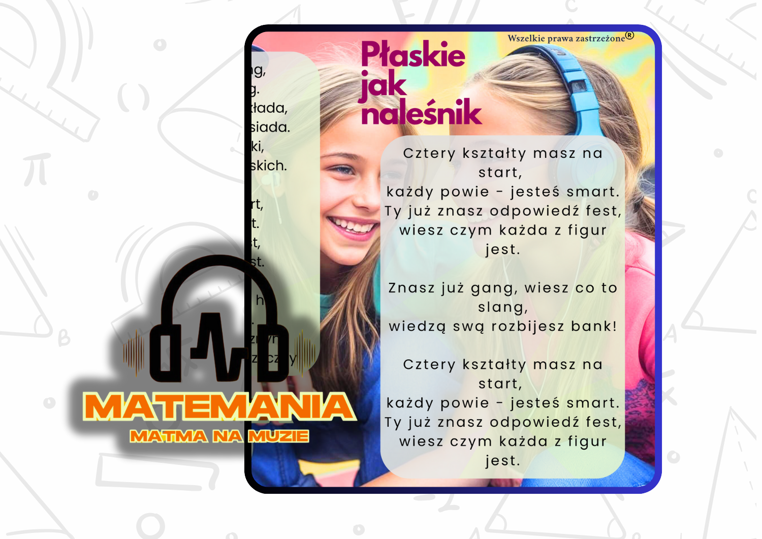 🎶1🎧wpadający w ucho mat-klip ✖️ "Płaskie jak naleśnik" z wideo i animacjami -uczeń w muzyczny sposób poznaje rodzaje figur płaskich. Klip sprzyja kodowaniu informacji dzięki rytmowi, rymom i angażowaniu emocji.