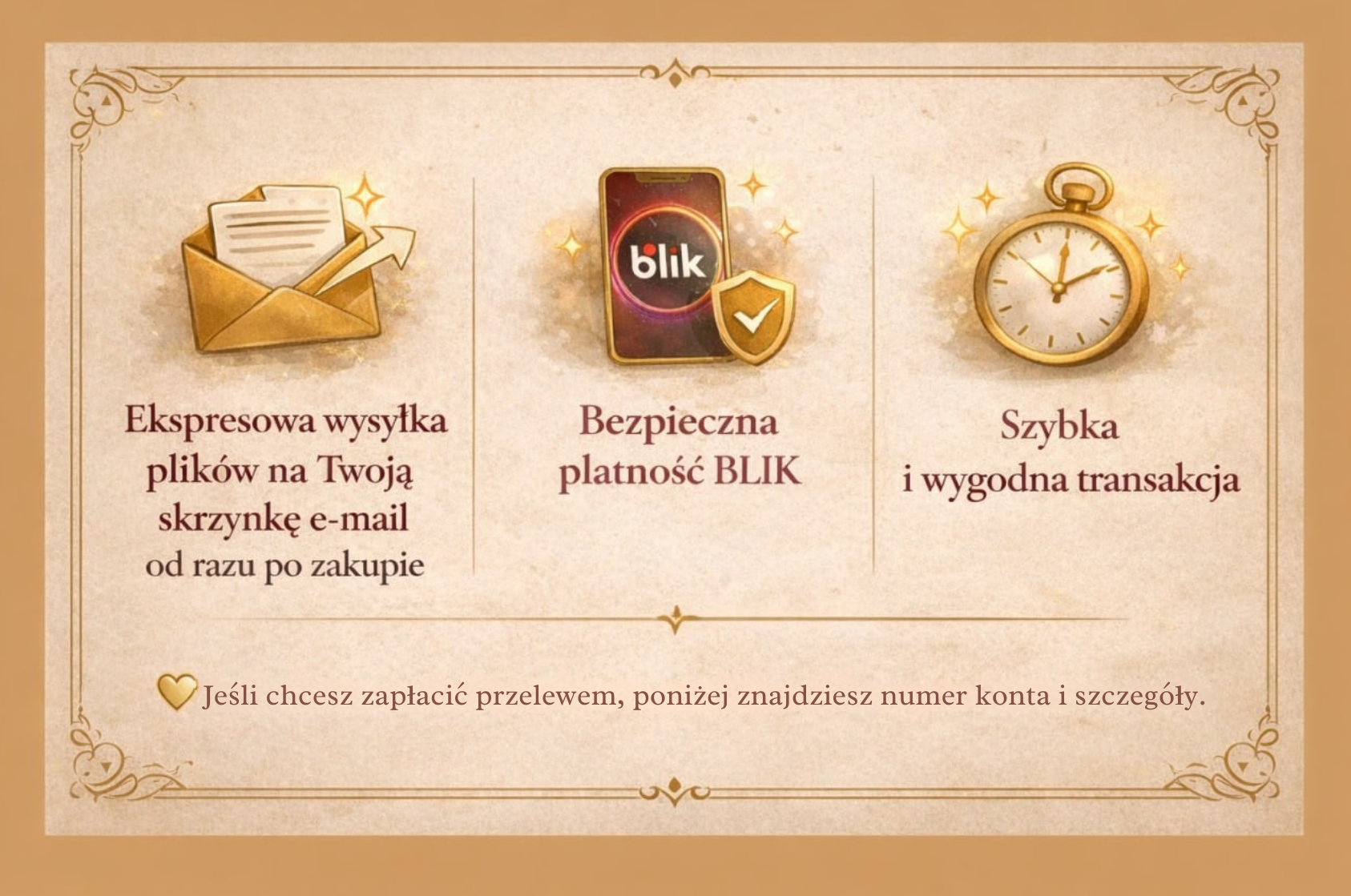 ⚠️ Polecam szybką i bezpieczną płatność BLIKIEM/kartą. Istnieje także możliwość płatności przelewem tradycyjnym. Zapoznaj się z informacją poniżej: