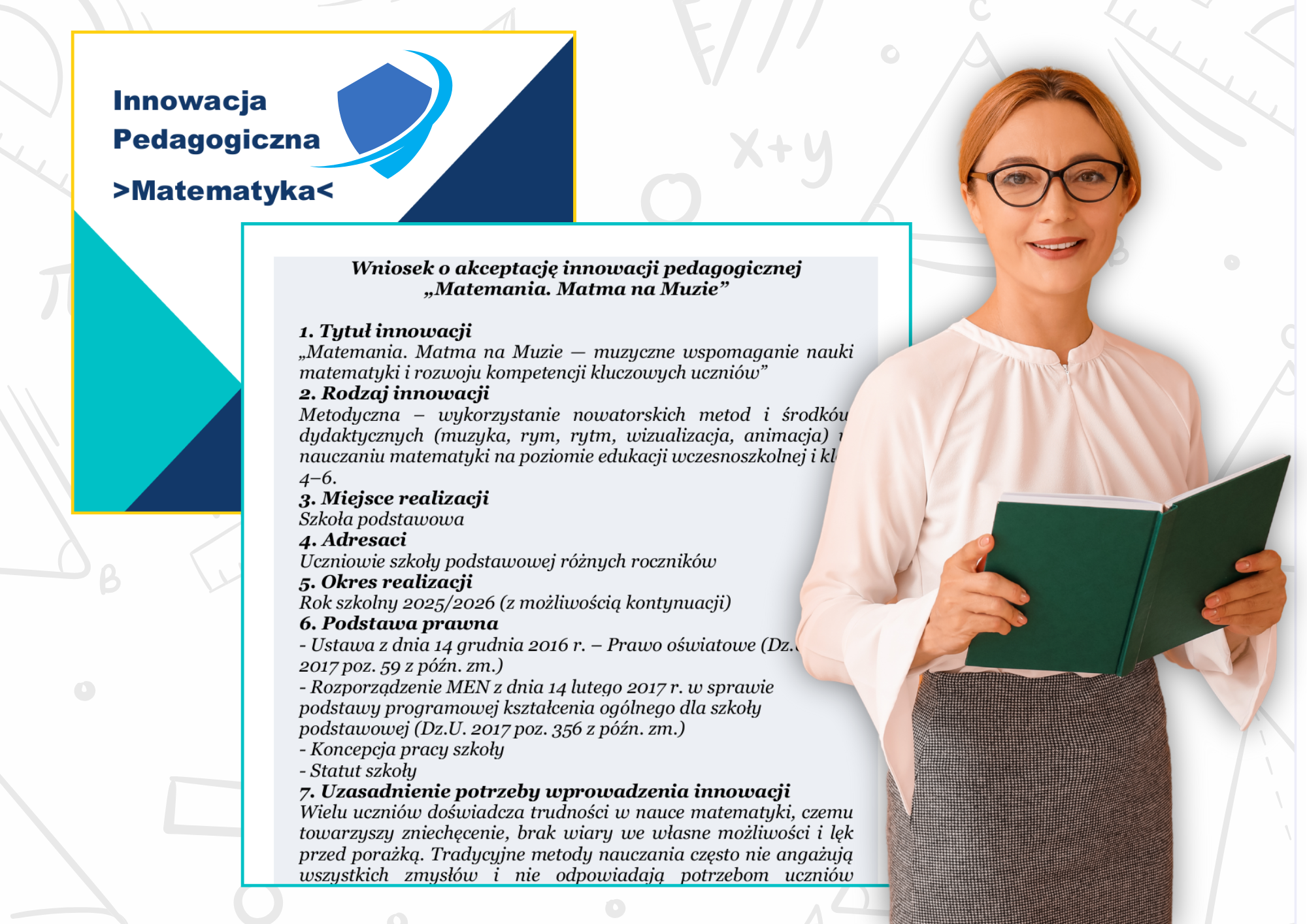 📦Wniosek o wdrożenie innowacji pedagogicznej - czyli kompletny dokument do rady pedagogicznej zawierający: uzasadnienie, cele, metody, zakładane efekty, ewaluację.