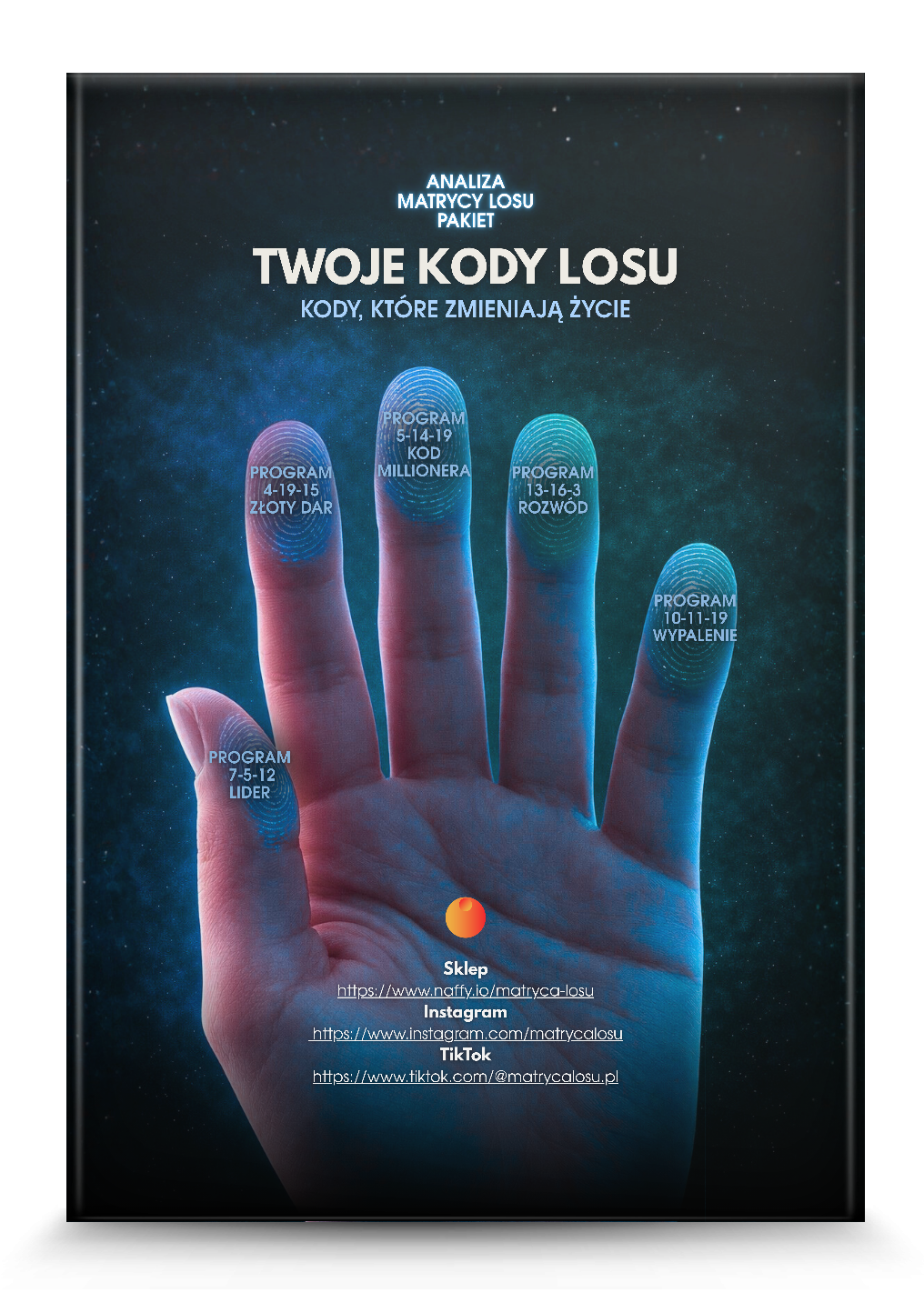 ODCZYT PROGRAMÓW W MATRYCY LOSU to osobista analiza Twoich „kodów” zapisanych w dacie urodzenia. Na podstawie układu Twojej Matrycy wyłaniam programy, które mogą sterować powtarzającymi się scenariuszami w życiu – w relacjach, pieniądzach, decyzjach, zdrowiu, energii i kierunku rozwoju.