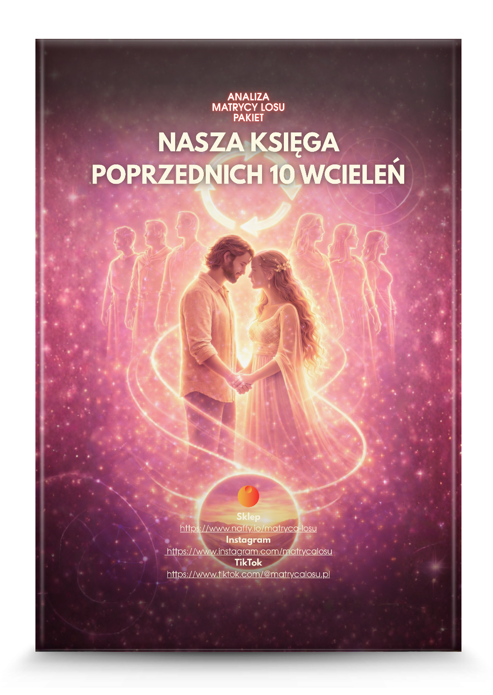 Odkryj Waszą Księgę Poprzednich 10 Wcieleń – odczyt relacji oparty na dwóch datach Waszego urodzenia, na podstawie których tworzona jest indywidualna analiza partnerska. Dzięki temu można określić 10 poprzednich wcieleń Waszej więzi, to, kim byliście dla siebie, jakie doświadczenia Was łączyły oraz jakie lekcje karmiczne nadal wpływają na Waszą relację, emocje, decyzje i wspólną drogę.