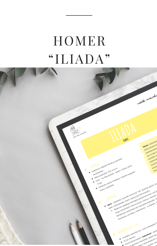"Iliada"- Homer (notatka)📘 Szybka i konkretna notatka z „Iliady” – geneza, bohaterowie, problematyka i więcej! 🚀7,99 zł -