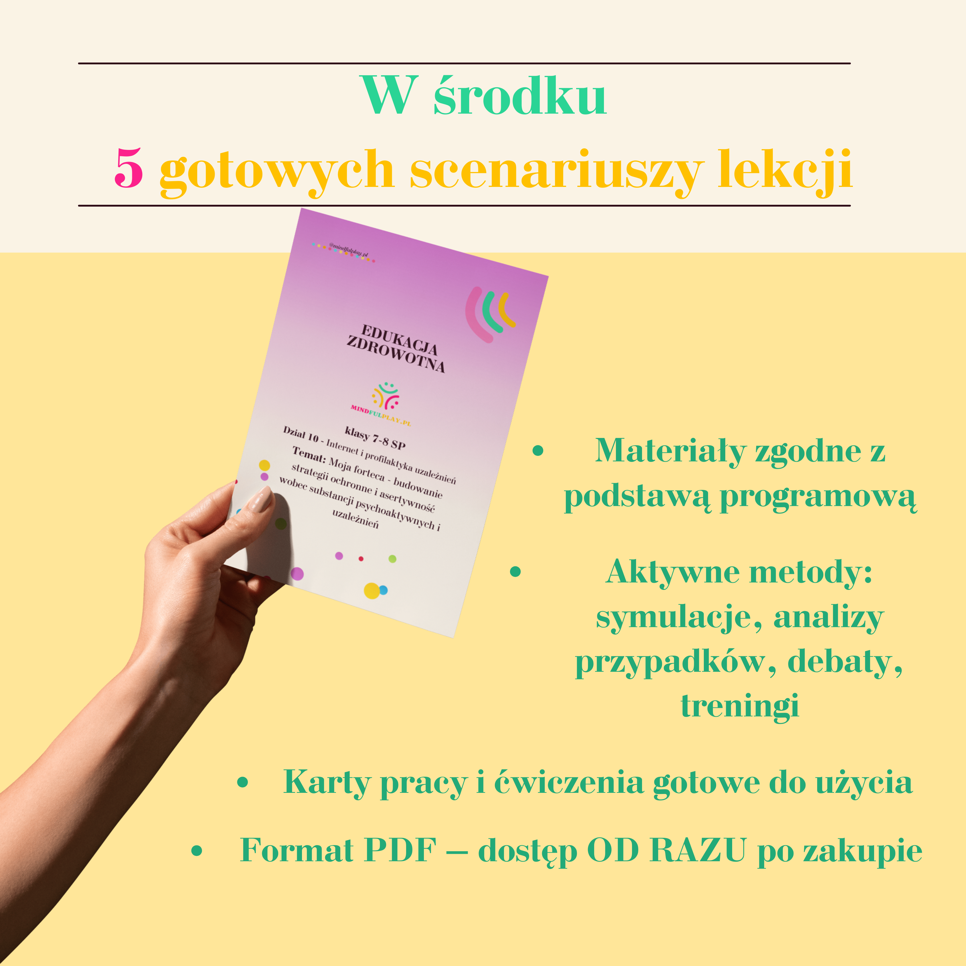 Zestaw rozwija krytyczne myślenie, samoświadomość, asertywność oraz głębokie zrozumienie mechanizmów uzależnień – zarówno od substancji, jak i technologii.