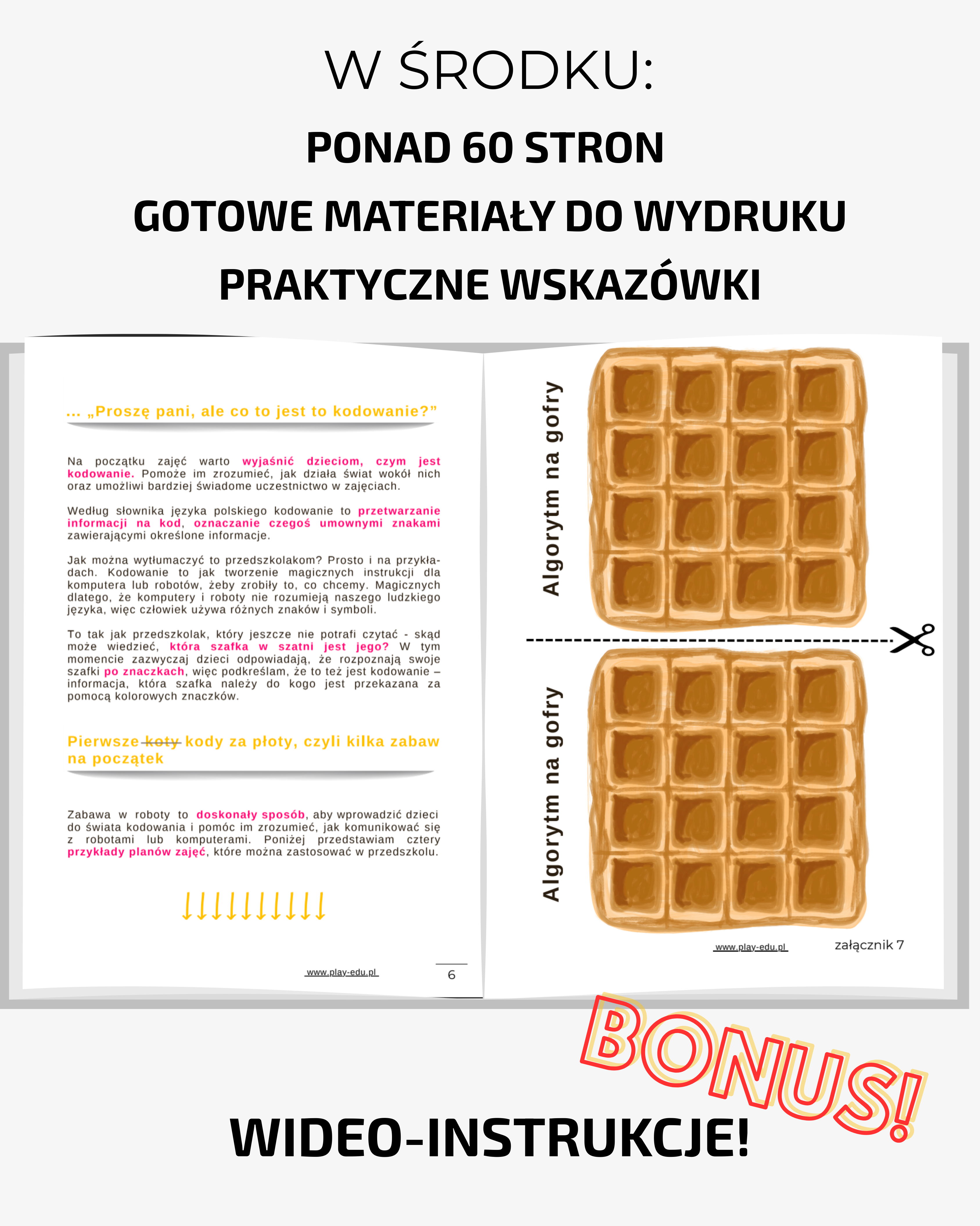Jest to gotowy, sprawdzony zestaw zabaw wprowadzających, który oszczędza Ci godziny planowania. To nie są suche ćwiczenia, ale scenariusze oparte na pracy z dziećmi – wprowadzają w świat kodowania. Otrzymujesz dokładne opisy i materiały do druku (plus wideo-bonusy!). Pokaż swojemu dziecku/podopiecznym, że błędy są okej, a logiczne myślenie jest super.