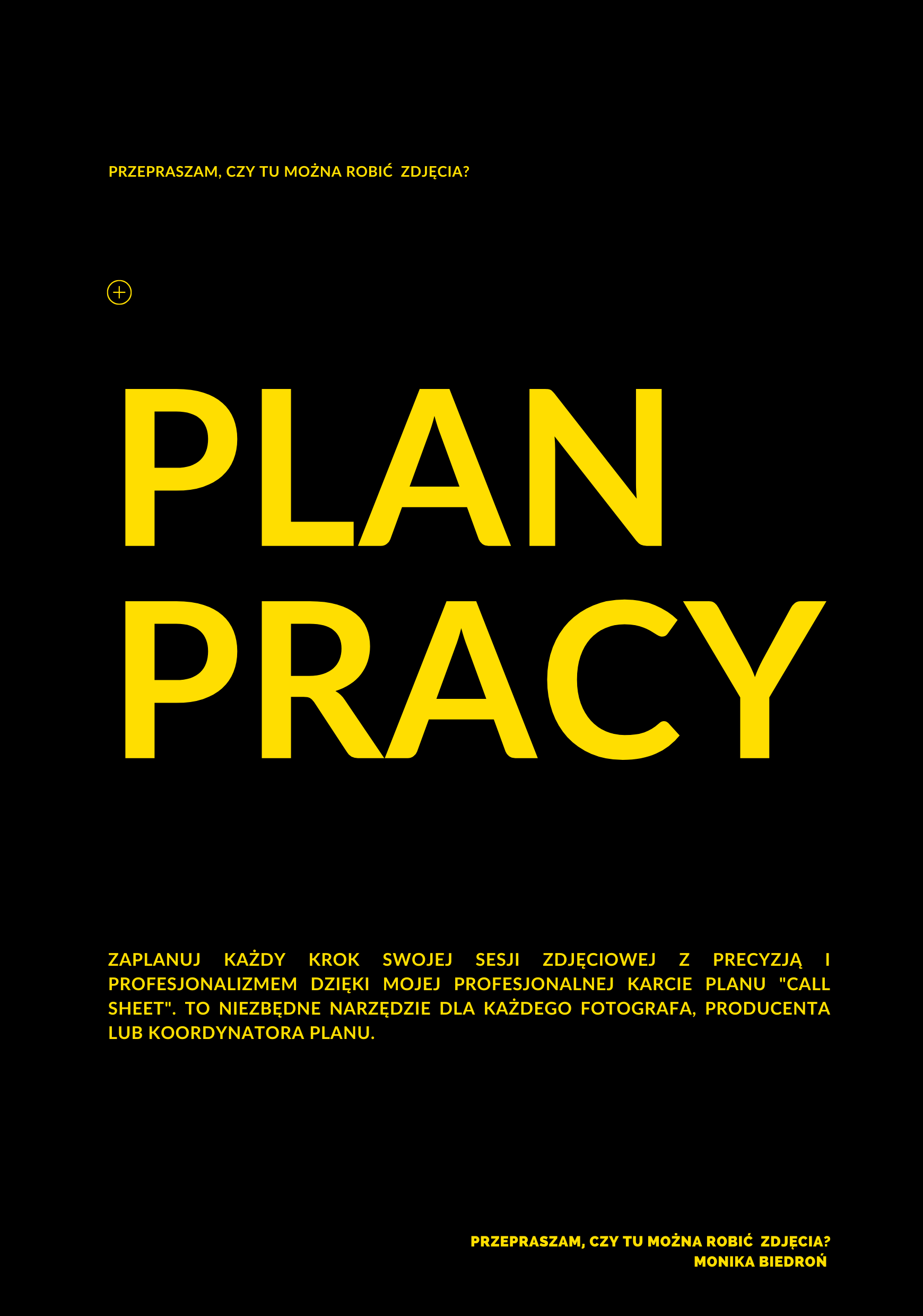 Zaplanuj każdy krok swojej sesji zdjęciowej z precyzją i profesjonalizmem dzięki mojej Profesjonalnej Karcie Planu "Call Sheet". To niezbędne narzędzie dla każdego fotografa, producenta lub koordynatora planu.