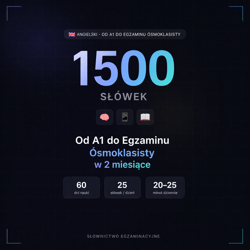 Od A1 do egzaminu 8-klasistyIdealnie dobrane słówka i zdania dla ciebie jeżeli chcesz zdać egzamin15,00 zł -