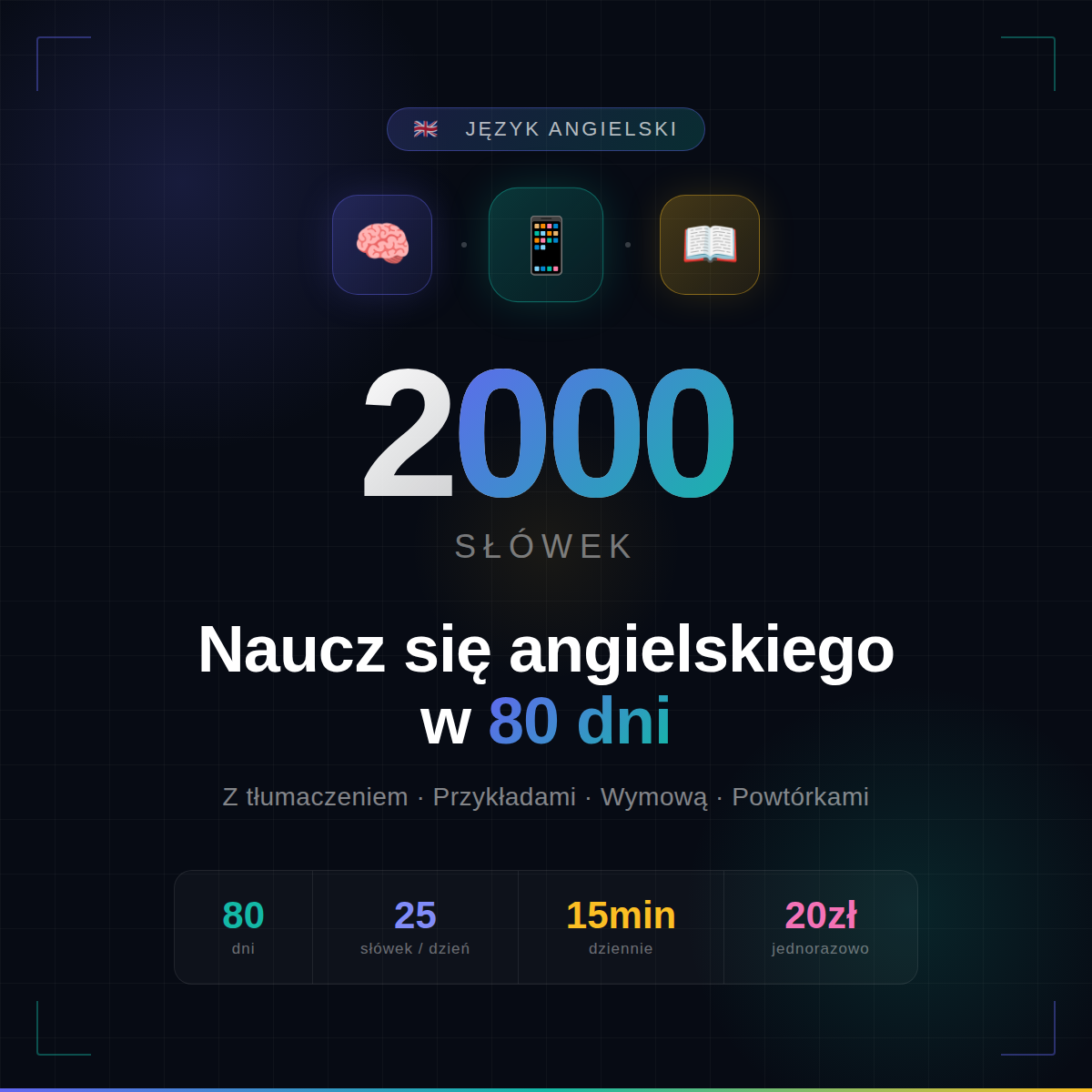 2000 Angielskich słówek dla A1-A22000 angielskich słówek z tłumaczeniem i wymową. 80 dni, 25 słówek dziennie.15,00 zł -