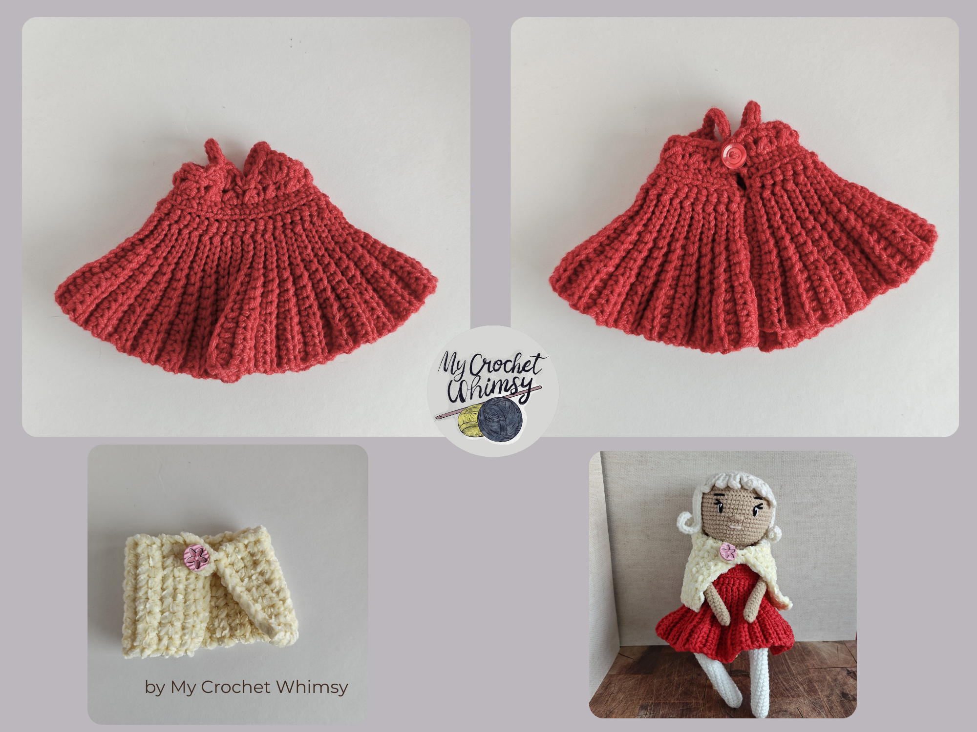 ⚠️ WAŻNA INFORMACJA: To jest wzór na ubranko (sukienkę i etolę). Aby stworzyć całą postać, potrzebujesz bazy – schemat na ciało lalki Elwiry znajdziesz w moim sklepie.