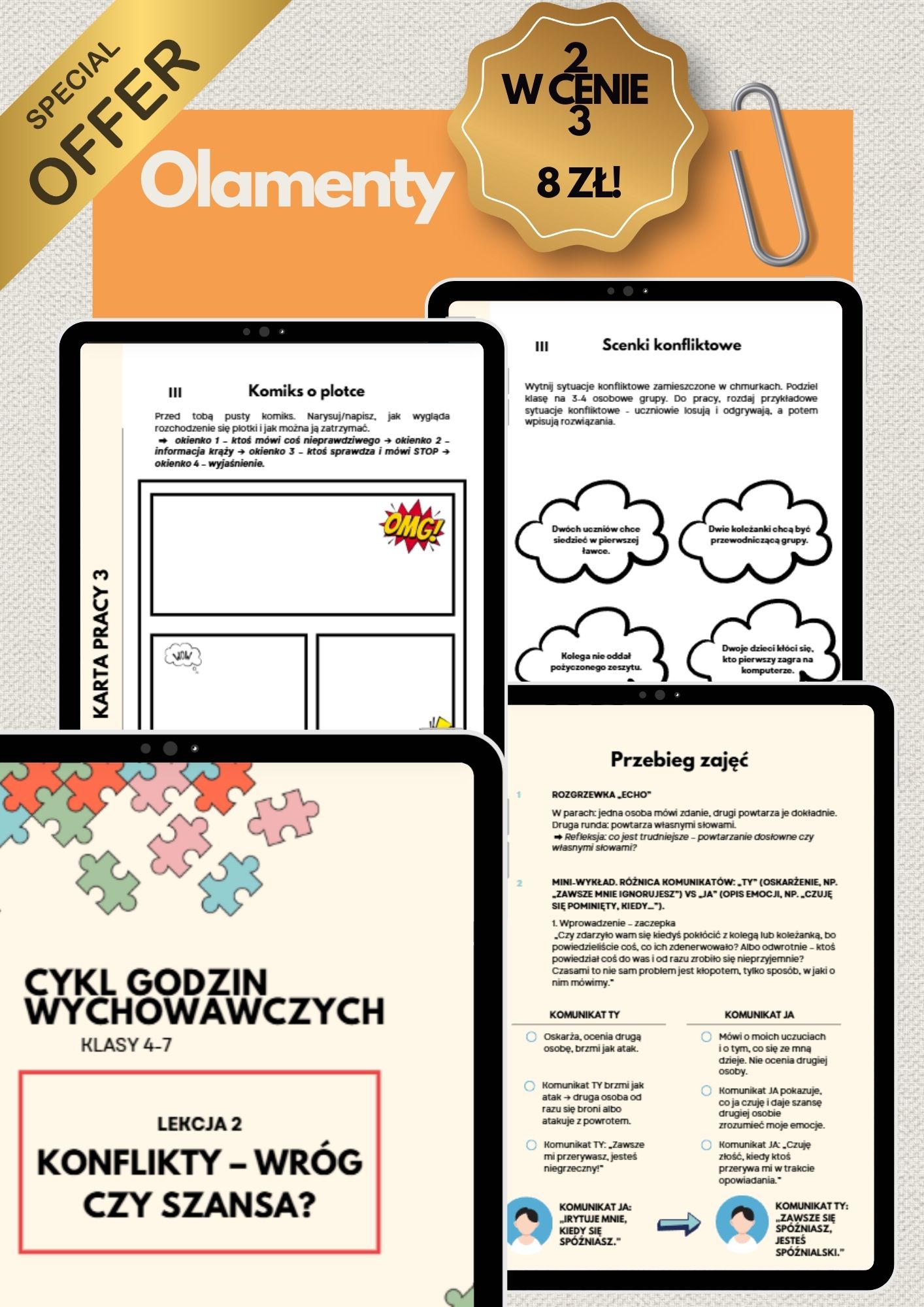 Super promocja – zestaw 3 scenariuszy godzin wychowawczych!2W3.Zestaw 3 scenariuszy godzin wychowawczych (komunikacja, konflikty, fakty i plotki) dla klas 4–7.8,00 zł -