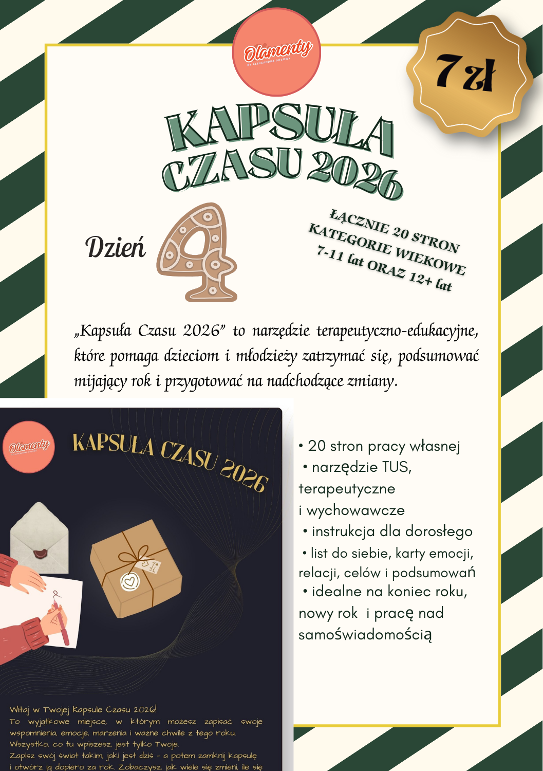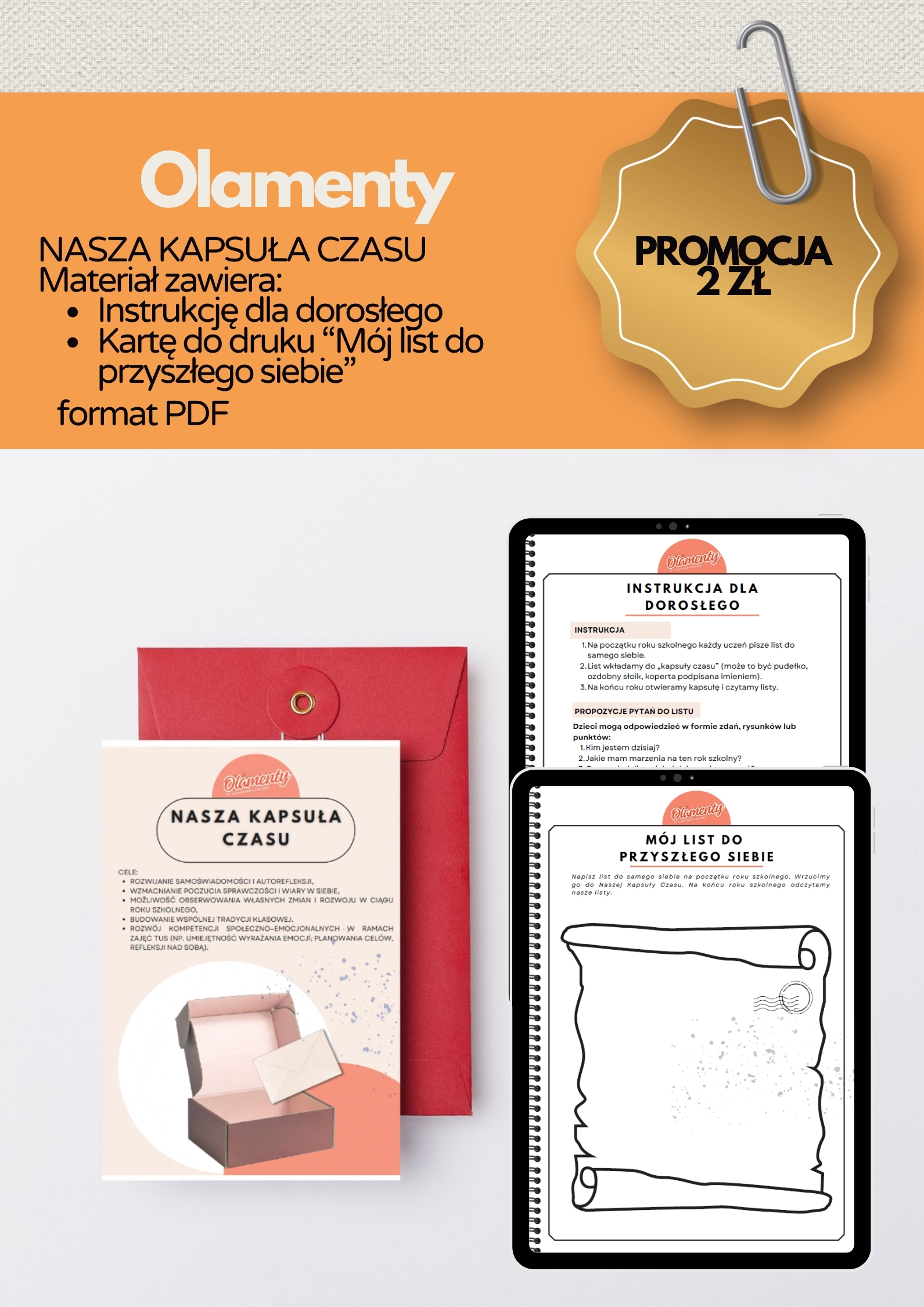 PromocjaNasza Kapsuła CzasuNasza Kapsuła Czasu”. Dzieci piszą list do siebie na początek roku, a na końcu odczytują.5,50 zł2,00 zł -