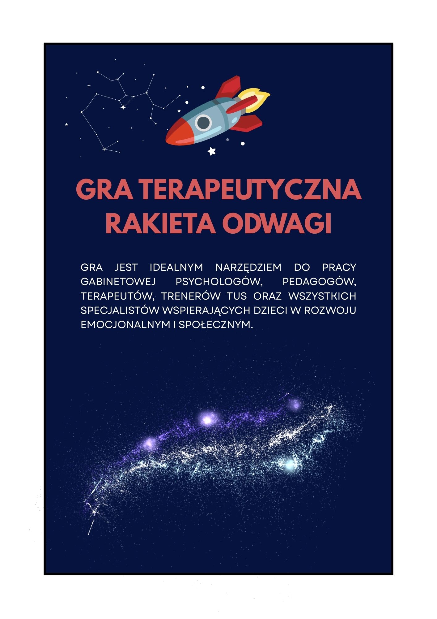 PromocjaGRA TERAPEUTYCZNA "PLANETA ODWAGI"„Rakieta Odwagi” – gra terapeutyczna PDF do druku. Wspiera odwagę, asertywność i pewność siebie.10,00 zł6,50 zł -