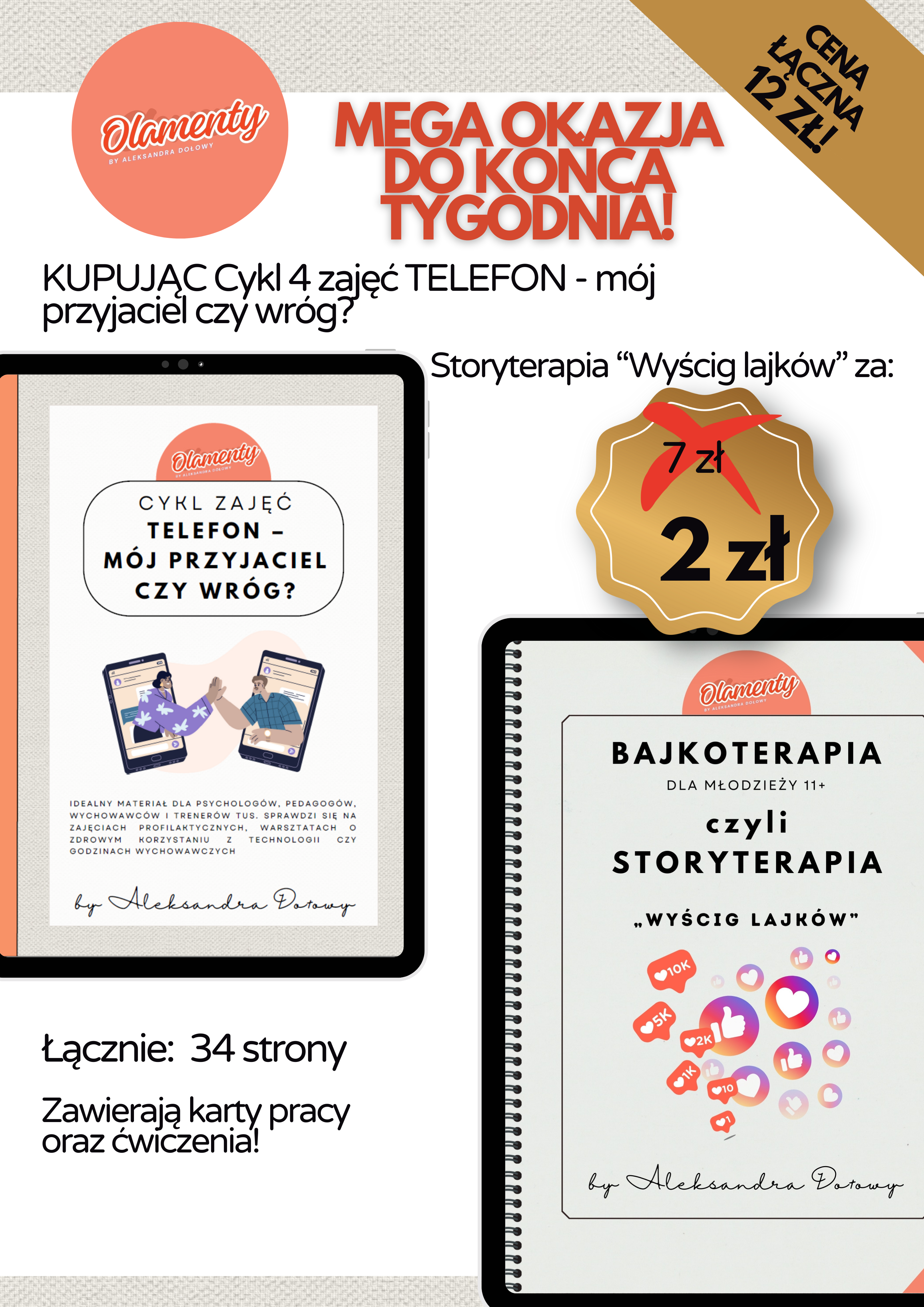 Promocja„Wyścig lajków” – bajkoterapia/storyterapia dla młodzieży 11+Bajka terapeutyczna o presji lajków w social mediach. Refleksja i ćwiczenia dla młodzieży.7,00 zł6,00 zł -