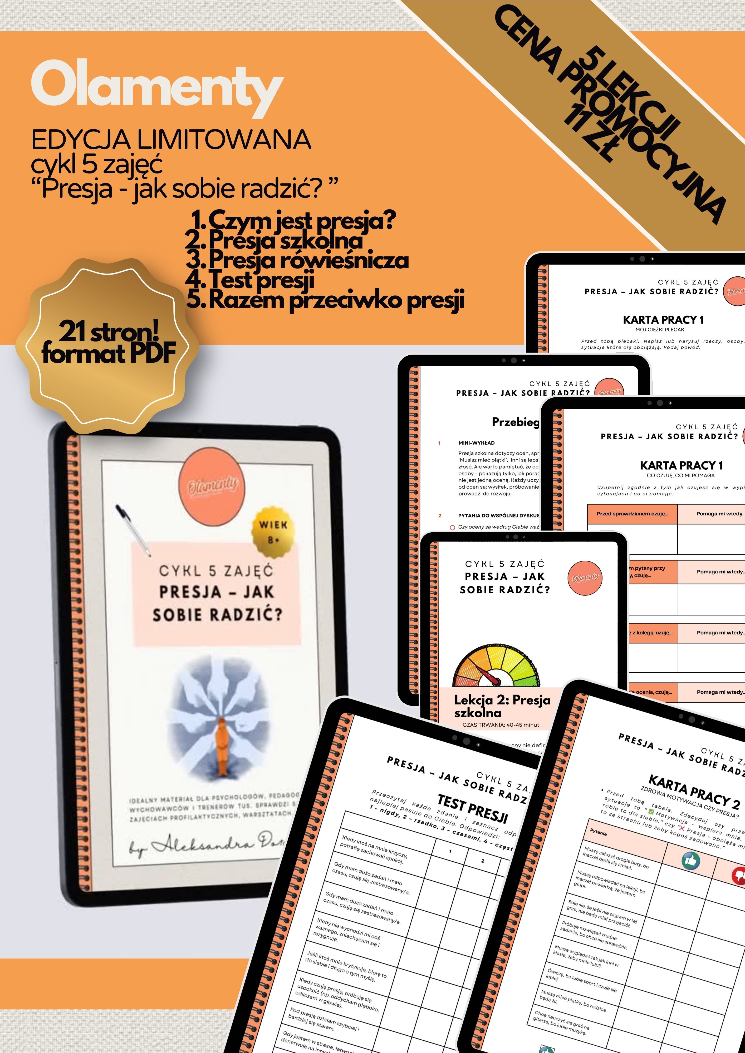 PromocjaPresja - jak sobie z nią radzić? Cykl 5 zajęć.Cykl 5 zajęć o presji dla dzieci 8+. Scenariusze, ćwiczenia i karty pracy.14,00 zł11,00 zł -