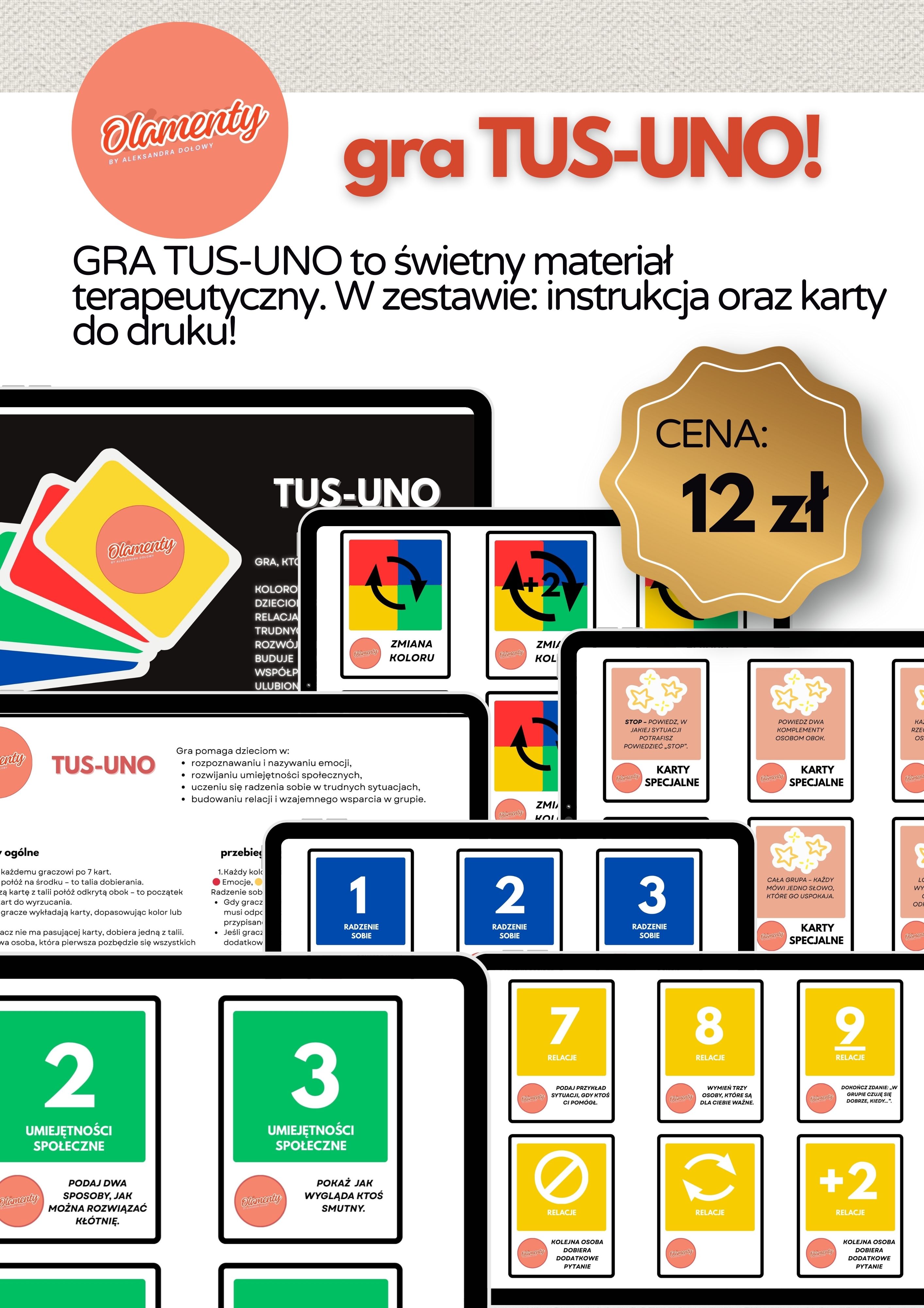 PromocjaGra TUS-UNOTUS-UNO 🎲 Gra, która uczy emocji i współpracy! Idealna na zajęcia TUS i do domu.16,00 zł12,00 zł -