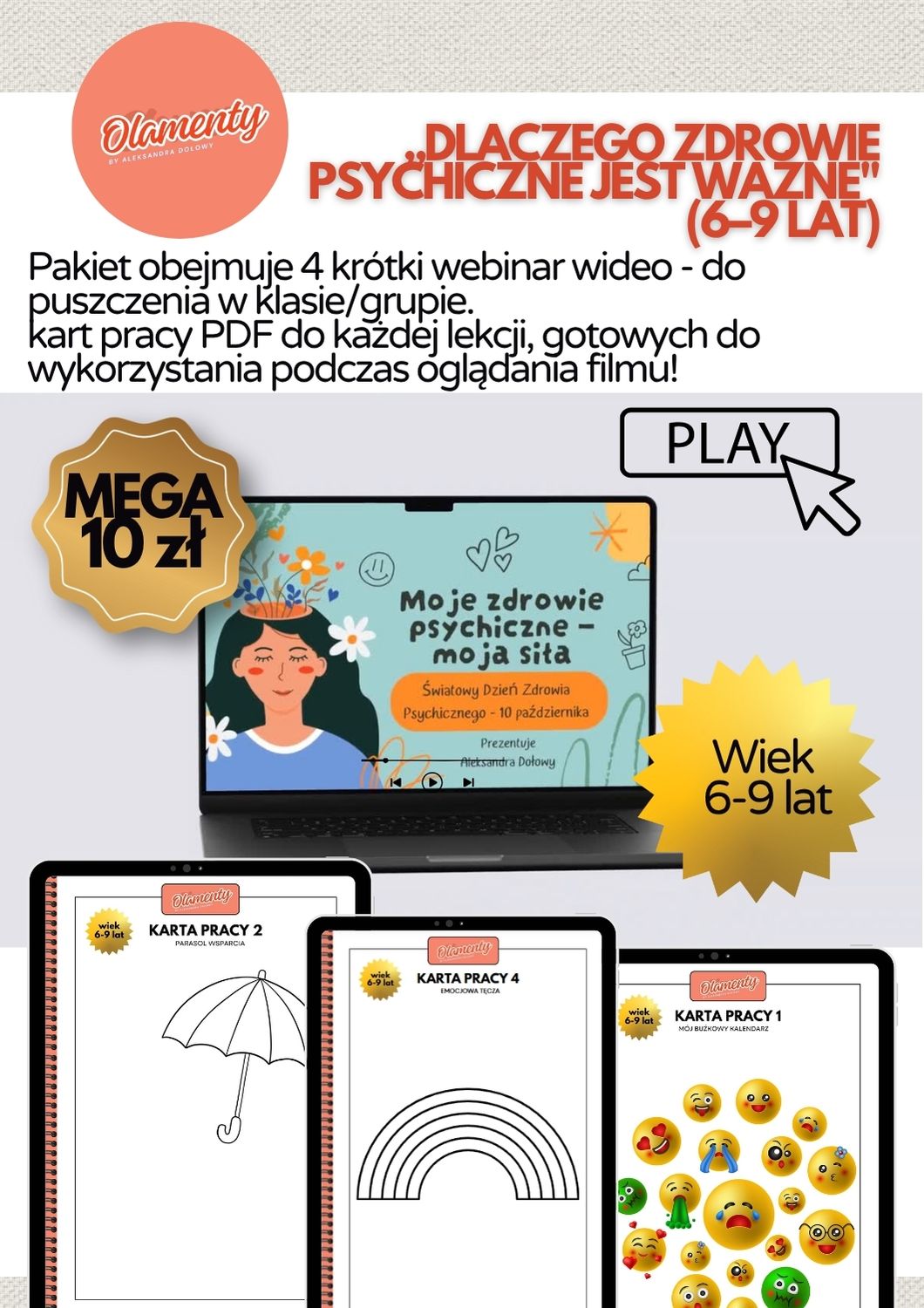 „Światowy Dzień Zdrowia Psychicznego” – pakiet dla dzieci 6–9 latPakiet na Światowy Dzień Zdrowia Psychicznego 🎒 Bajka, scenariusz i karty pracy – tylko 6 zł!6,00 zł -