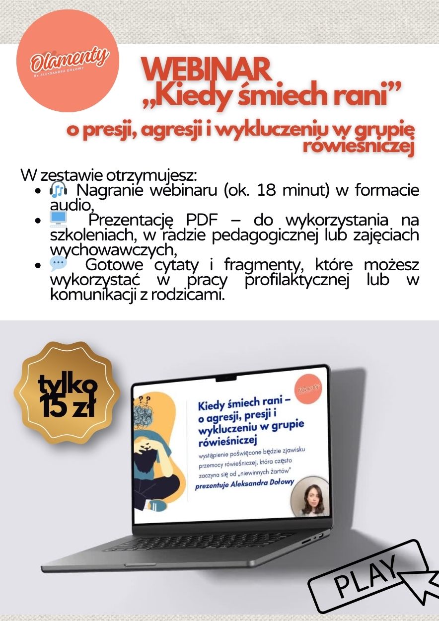 WEBINAR dla specjalistów „Kiedy śmiech rani” Jak rozpoznać i zatrzymać przemoc rówieśniczą w szkole15,00 zł -