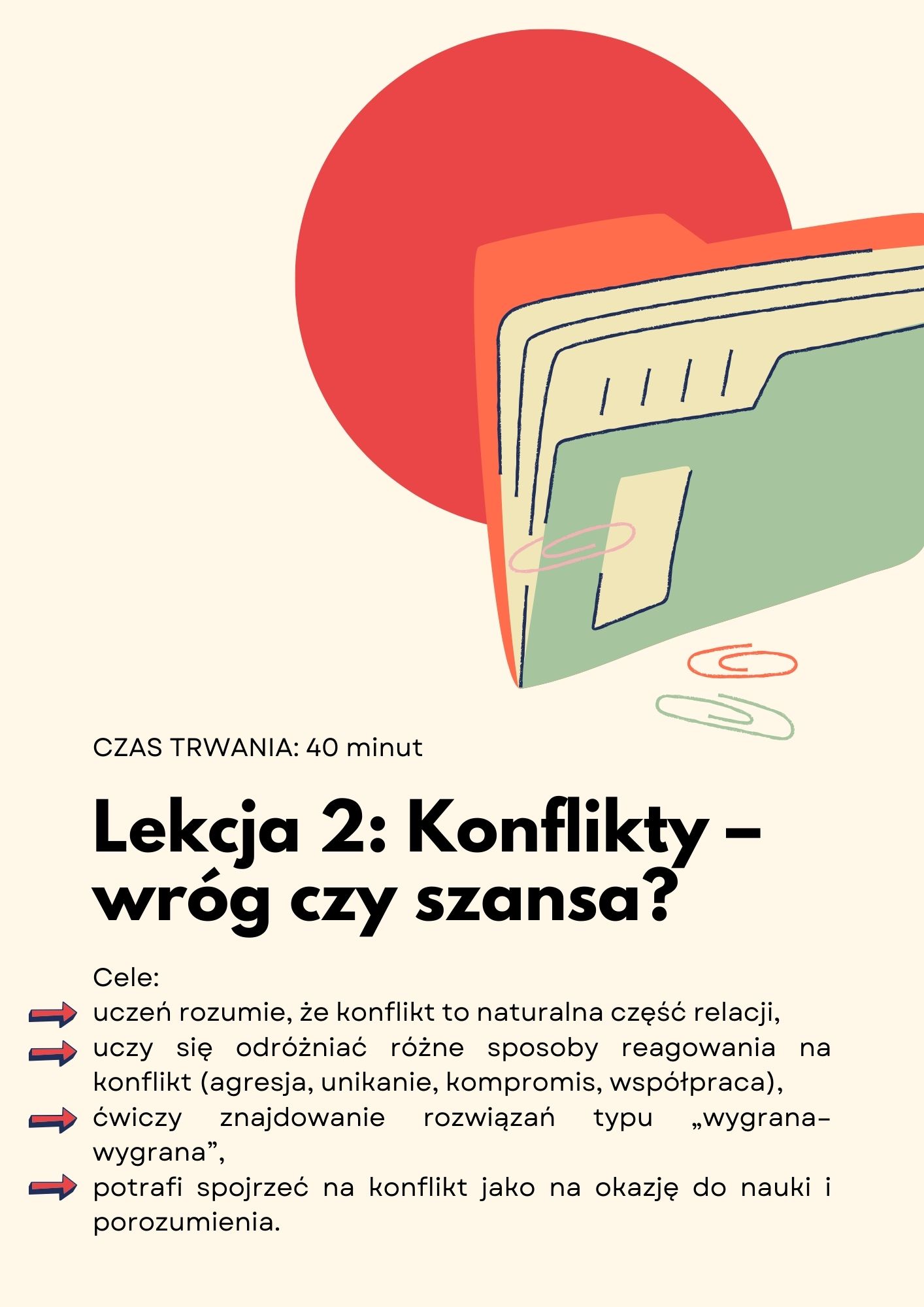PromocjaCykl godzin wychowawczych – Lekcja 2: Konflikty – wróg czy szansa?Scenariusz godziny wychowawczej o konflikcie. Ćwiczenia, karty pracy, rozwiązania „wygrana–wygrana”.5,50 zł4,00 zł -