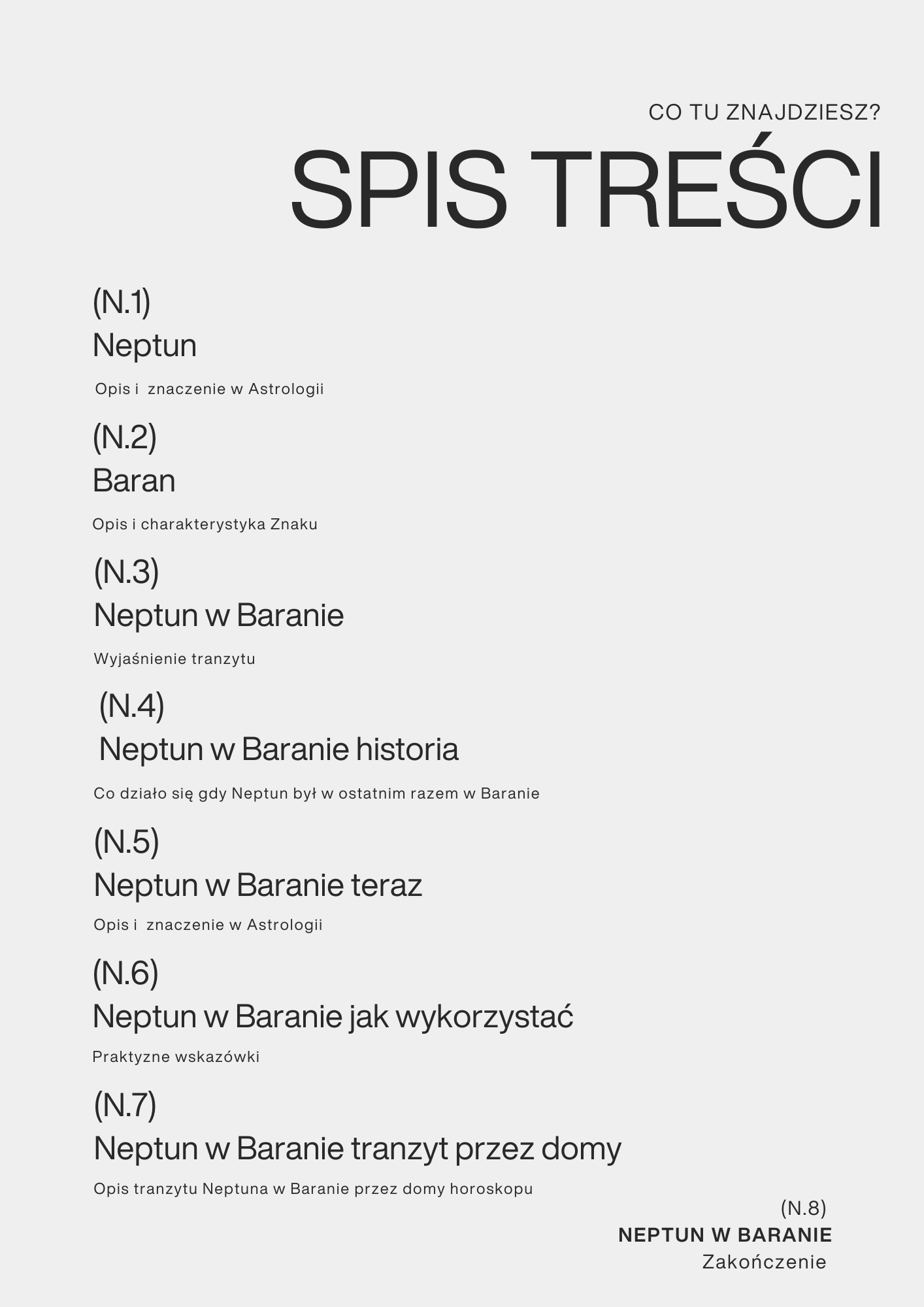 Ebook traktuje o tranzycie jak i samym Neptunie. Dodatkowo zawiera opis tranzytu przez każdy dom i o tym jak go wykorzystać.