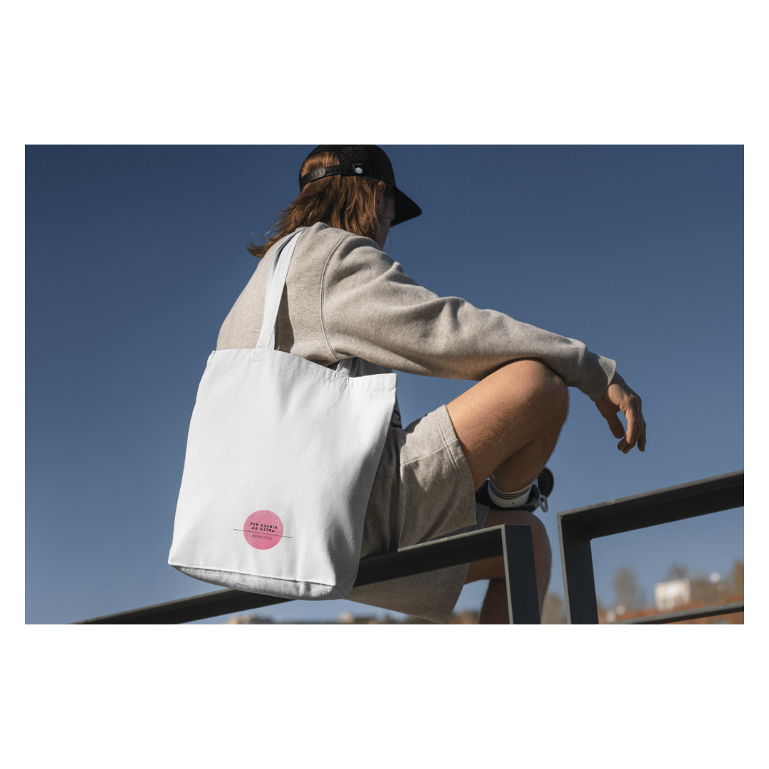 Bawełniana torba w różnych kolorach z Astro napisem i logiem: Per Ksenia Ad Astra