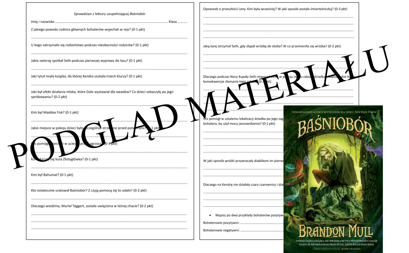 Wielki zestaw ,,Baśniobór" lektura uzupełniająca, karty pracy + gra + test