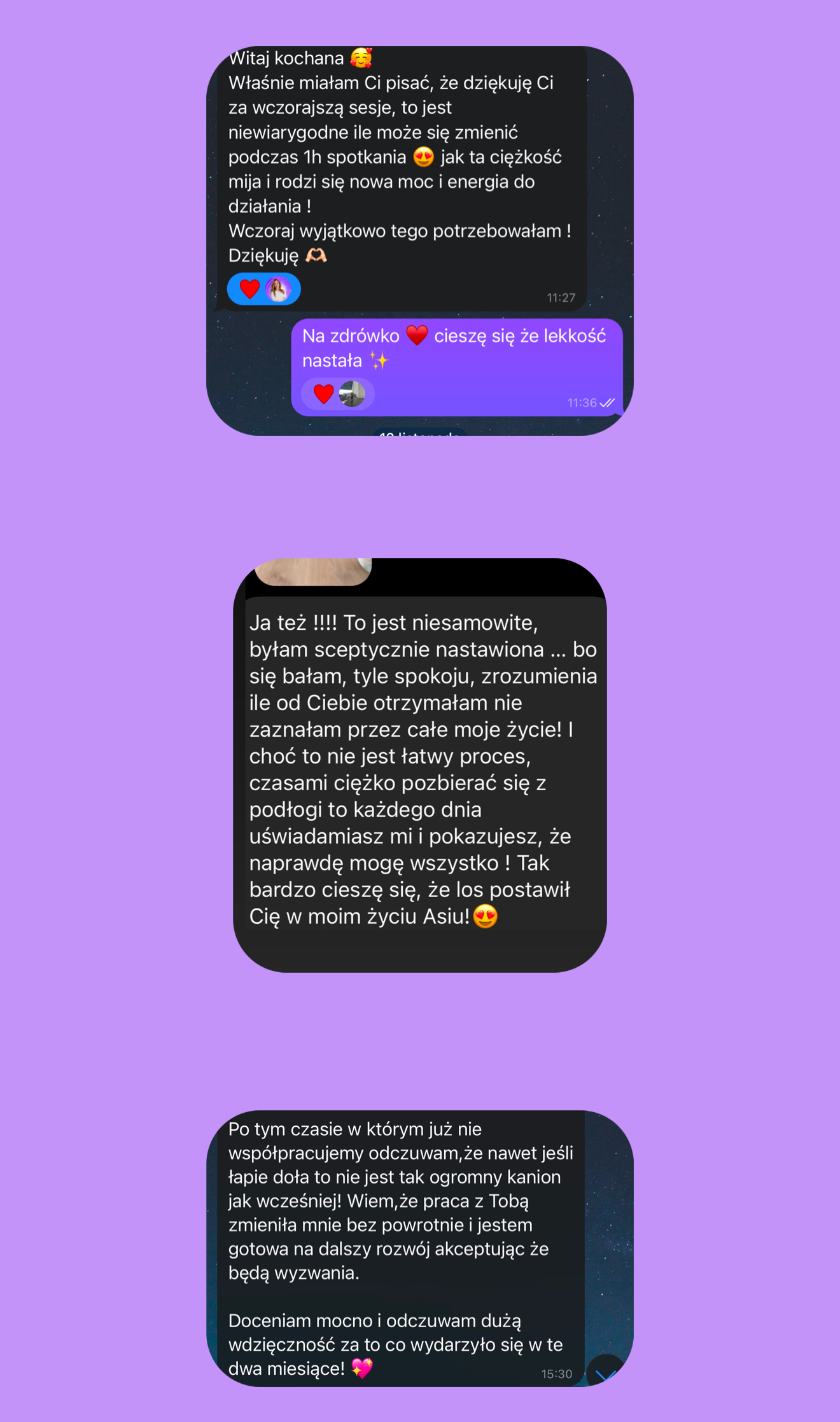 Psychointegracja to nie praca według schematów. Czy samych w sobie duchowych prawd…. Czy psychologicznych teorii.. Psychointegracja to możliwość by w końcu połączyć każdą część siebie, która patrzy na Ciebie od strony duchowej, psychiczno- emocjonalnej, energetycznej, hormonalnej, cyklów i schematów, traum i doświadcze, kończąc na nawykach ich zmianie i zbudowaniu w sobie odporności psychicznej , która nie bazuje tylko na „ motywacyjnych spotkaniach” a rozluźnionym ukladzie nerwowym i ciele które nie potrzebuje już chronić czy pozostawać w przestrzeni przetrwania.