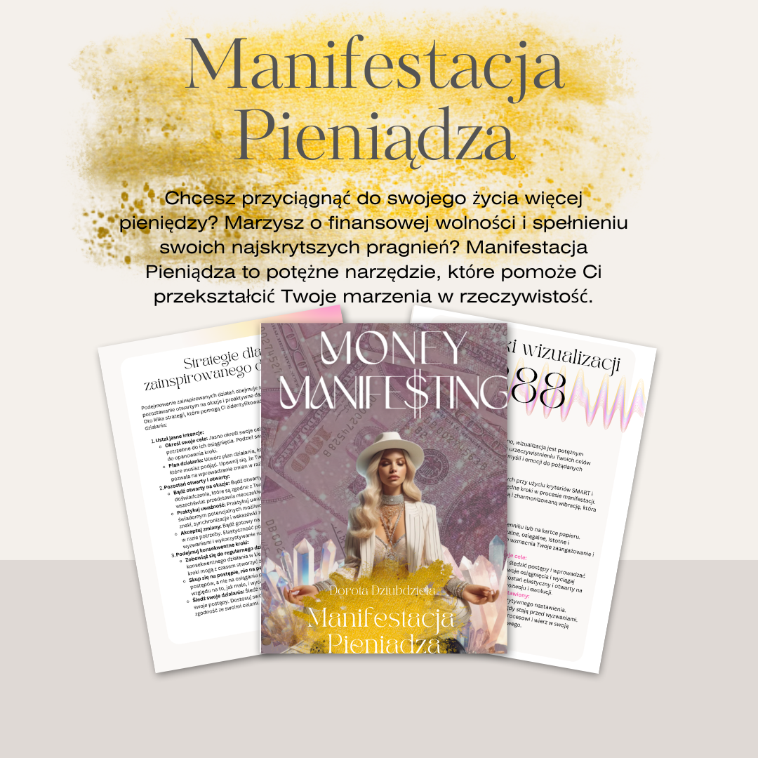Chcesz przyciągnąć do swojego życia więcej pieniędzy? Marzysz o finansowej wolności i spełnieniu swoich najskrytszych pragnień? Manifestacja Pieniądza to potężne narzędzie, które pomoże Ci przekształcić Twoje marzenia w rzeczywistość.