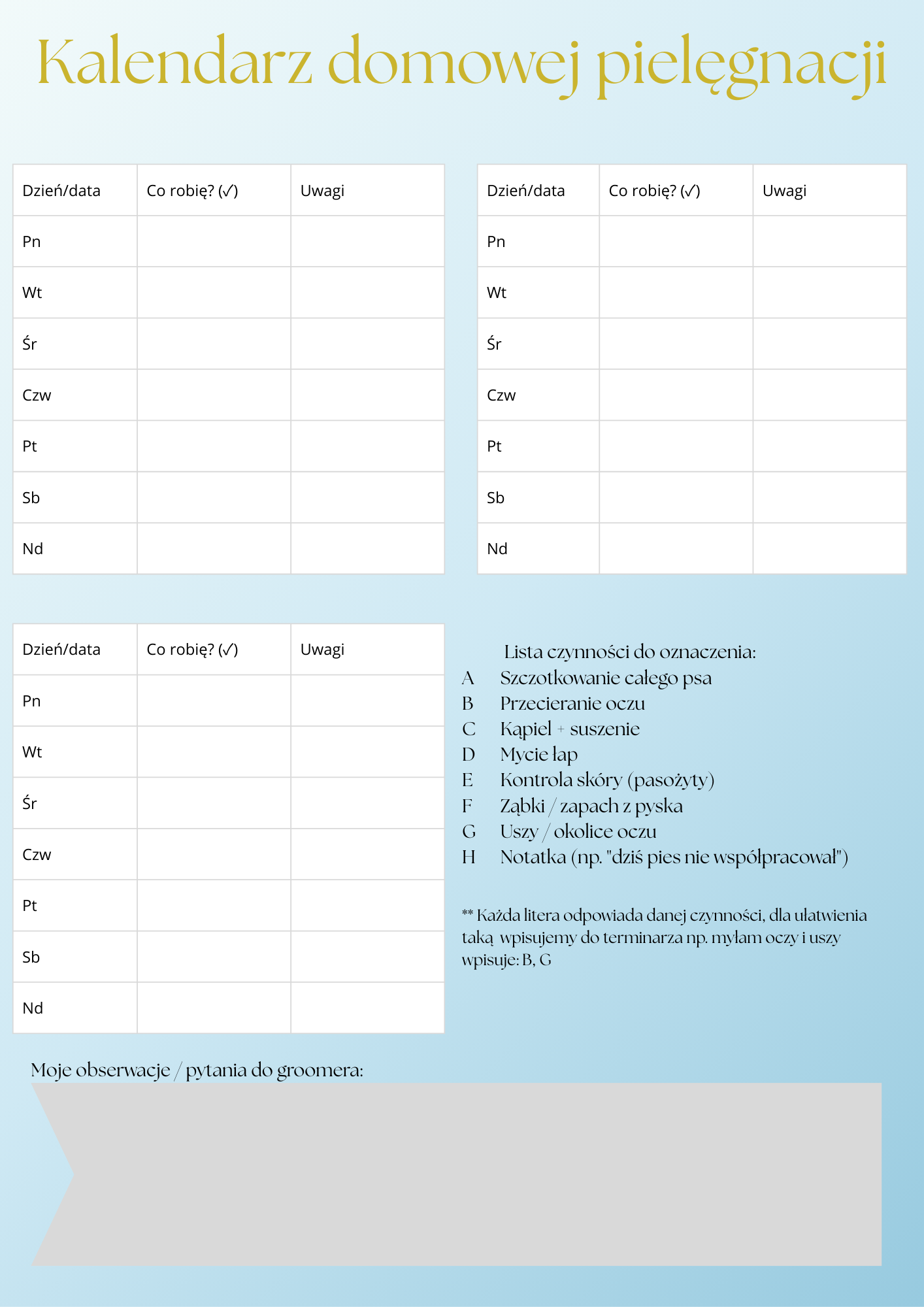 📅 Terminarze i kalendarze PDF – żeby już nigdy nie zapomnieć o kąpieli czy czyszczeniu uszu,