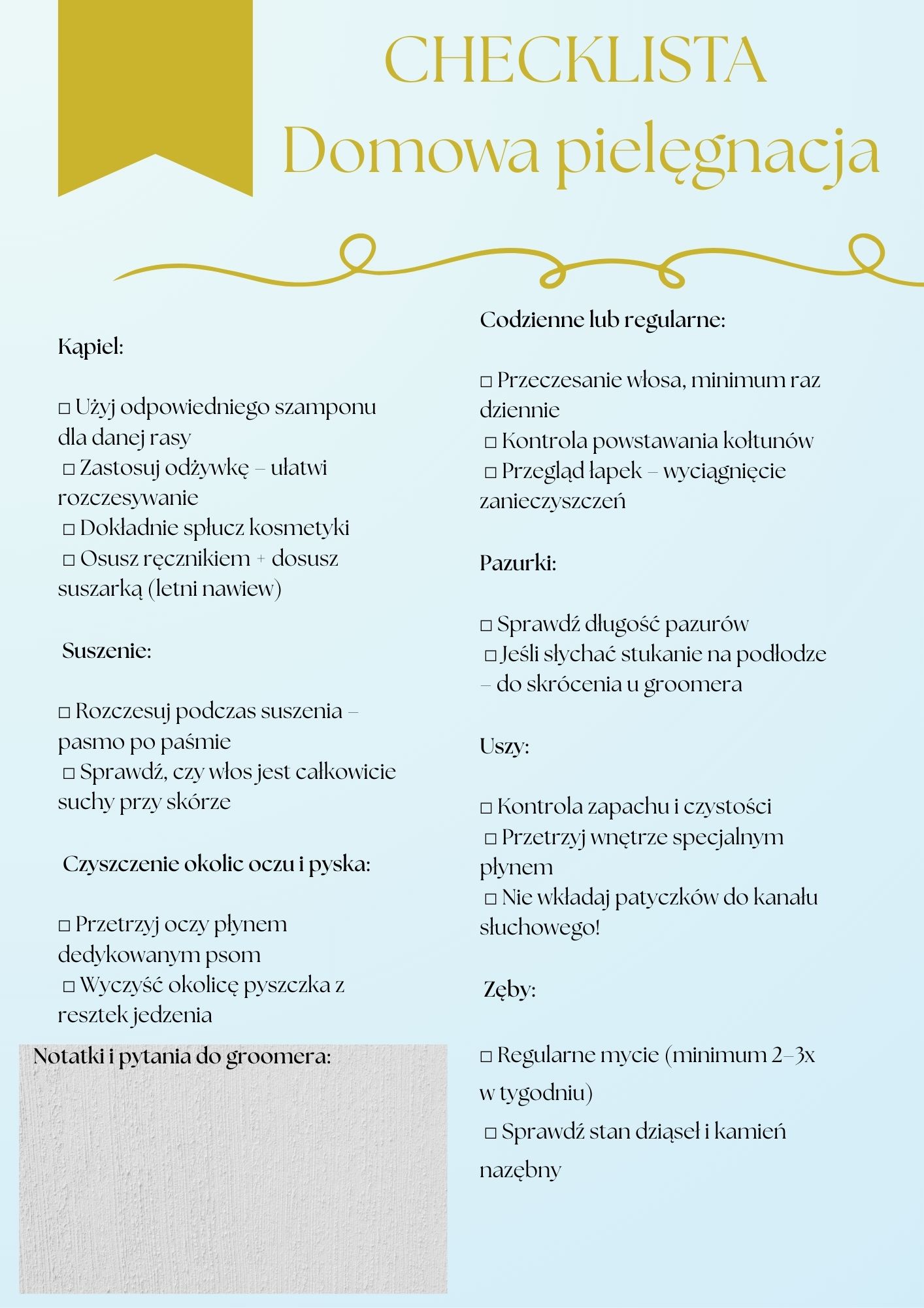 ✔️ Checklisty – do oznaczania w codziennej pielęgnacji.