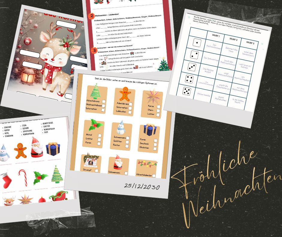 Weihnachten A1 -Wortschatzlernenmemory, wykreślanka, do wyboru, podpisz obrazek i wiele innych 25 kart pracy15,00 zł -
